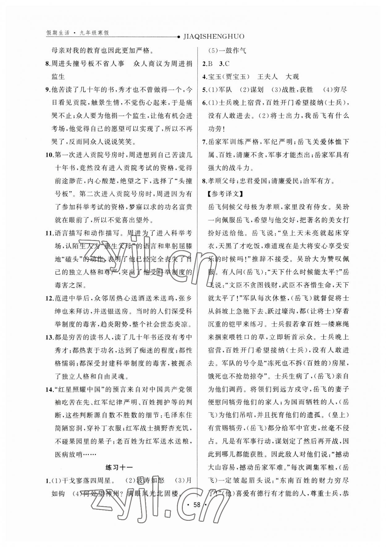 2023年假期生活方圆电子音像出版社九年级语文通用版