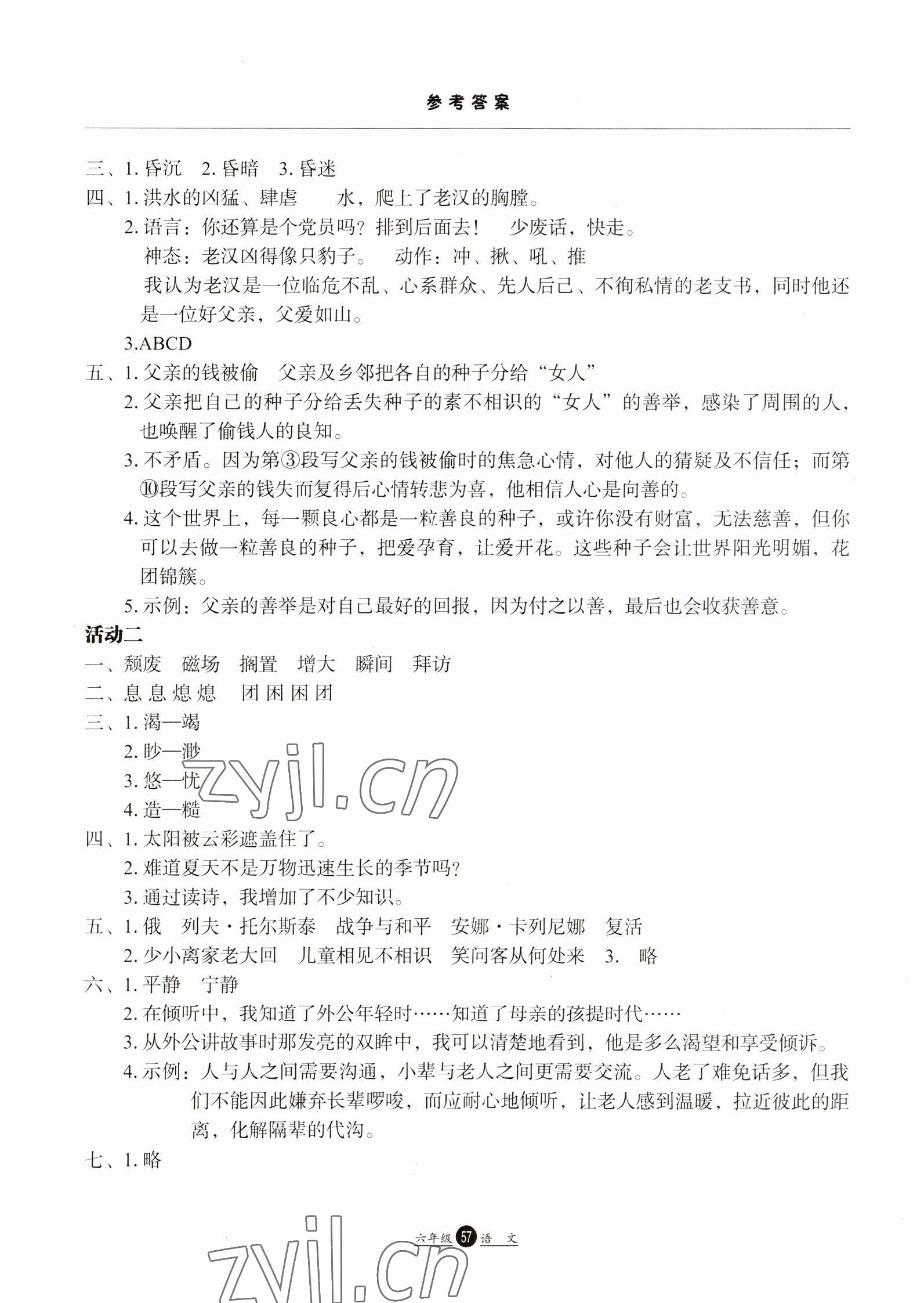 注:目前有些书本章节名称可能整理的还不是很完善,但都是按照顺序排列的,请同学们按照顺序仔细查找。练习册 2023年假期生活六年级语文河北人民出版社 答案主要是用来给同学们做完题方便对答案用的,请勿直接抄袭。