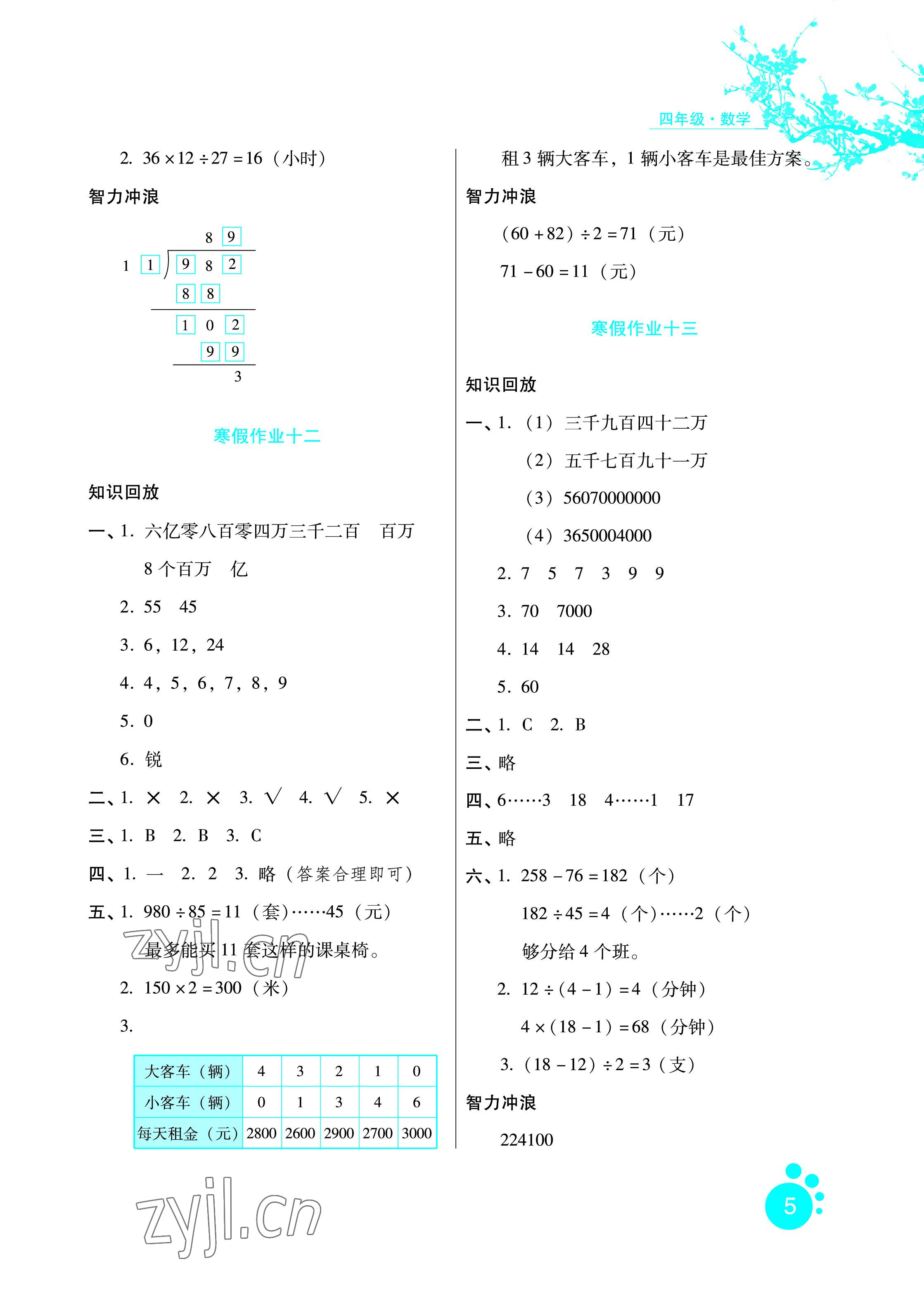 2023年寒假生活四年级数学区域专版河北人民出版社