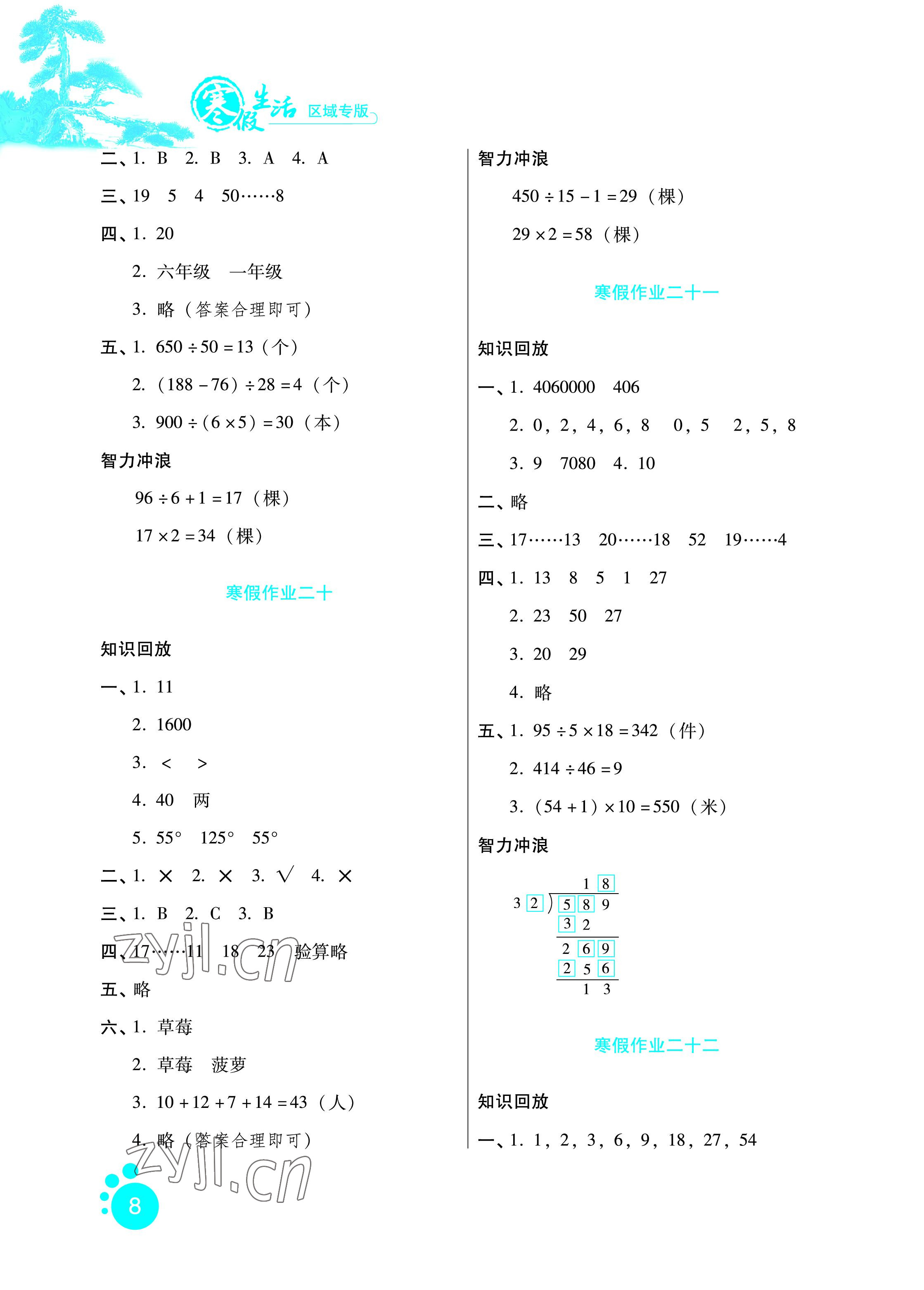 2023年寒假生活四年级数学区域专版河北人民出版社