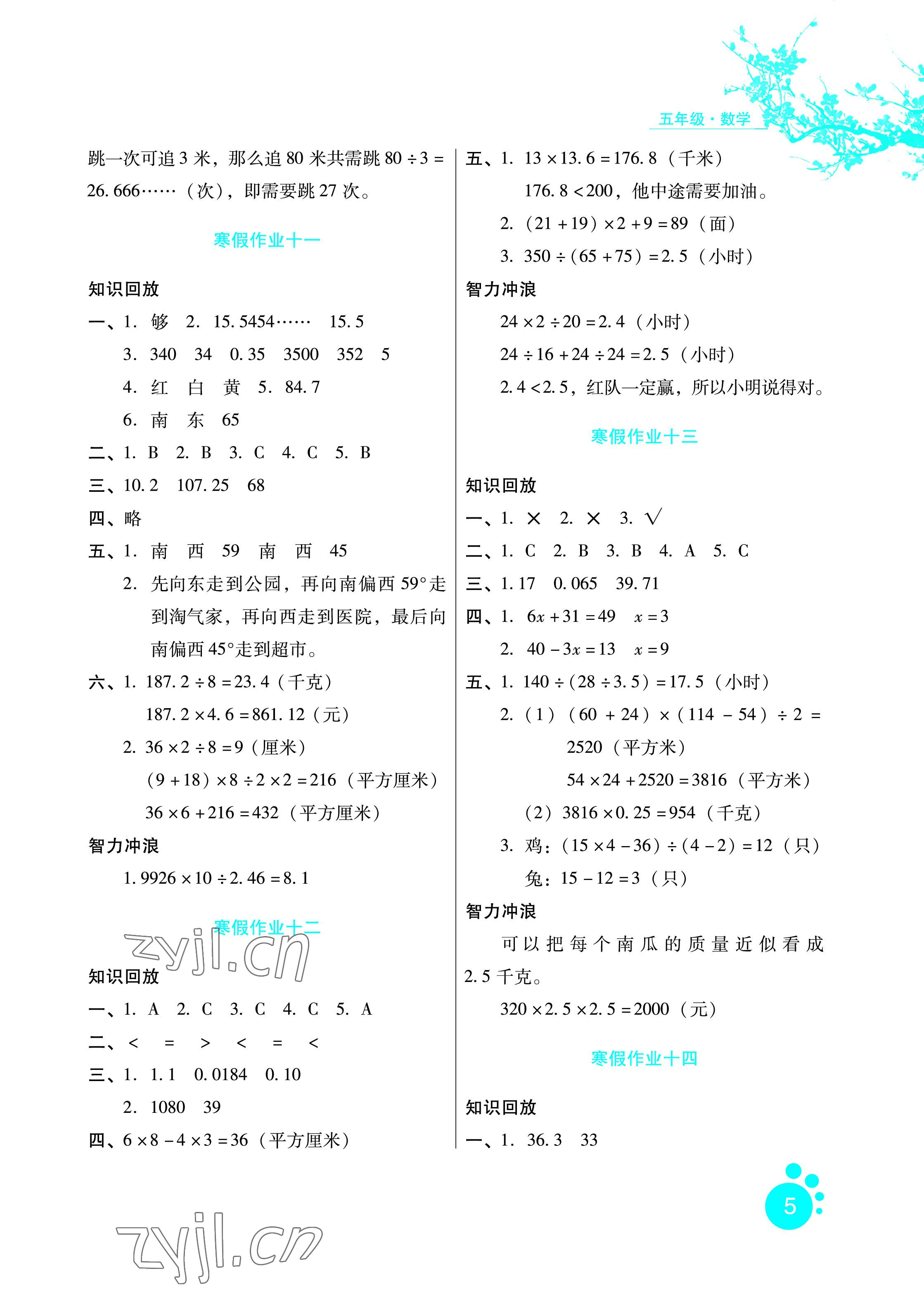 2023年寒假生活五年级数学区域专版河北人民出版社