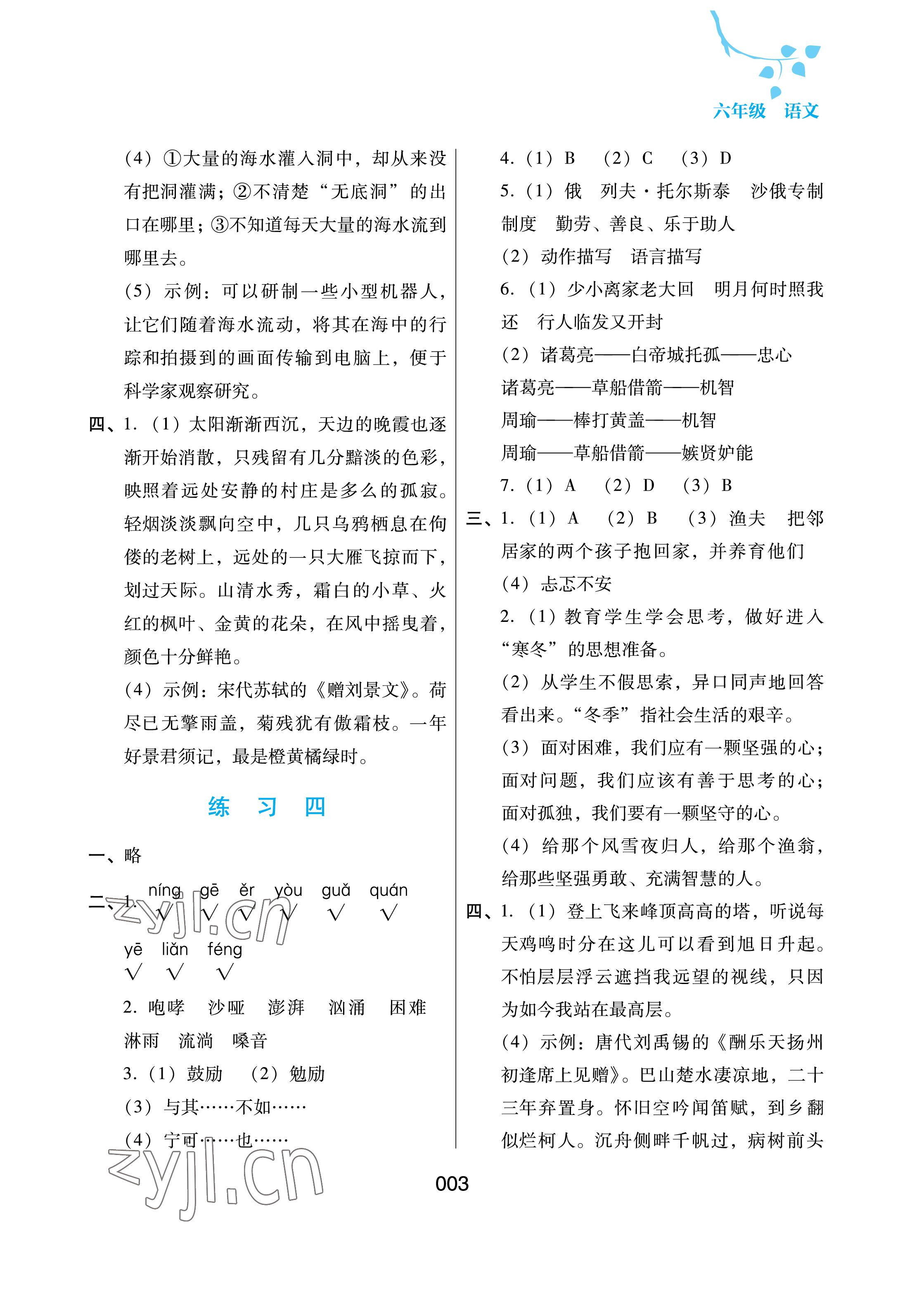 注:目前有些书本章节名称可能整理的还不是很完善,但都是按照顺序排列的,请同学们按照顺序仔细查找。练习册 2023年寒假综合练习六年级语文 答案主要是用来给同学们做完题方便对答案用的,请勿直接抄袭。
