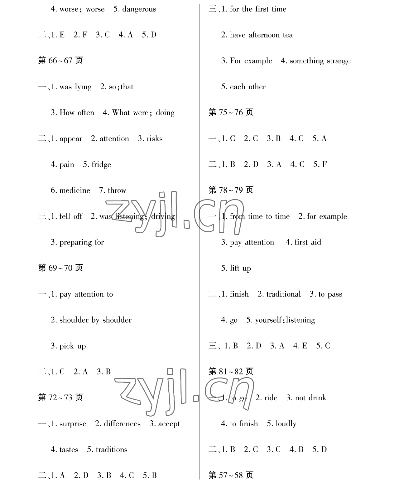 注:目前有些书本章节名称可能整理的还不是很完善,但都是按照顺序排列的,请同学们按照顺序仔细查找。练习册 2023年阳光假日寒假八年级英语 答案主要是用来给同学们做完题方便对答案用的,请勿直接抄袭。