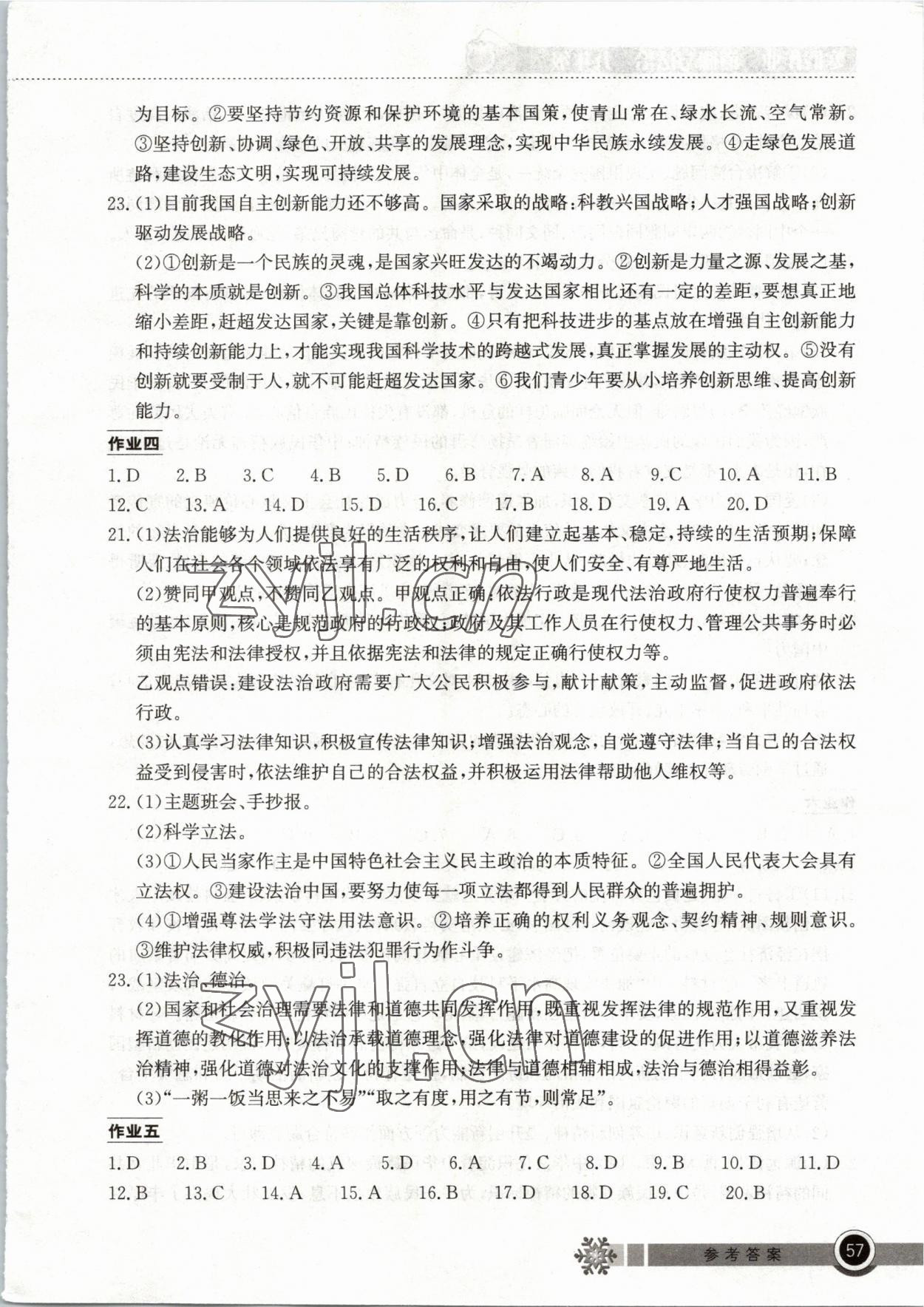2023年长江作业本寒假作业湖北教育出版社九年级道德与法治人教版