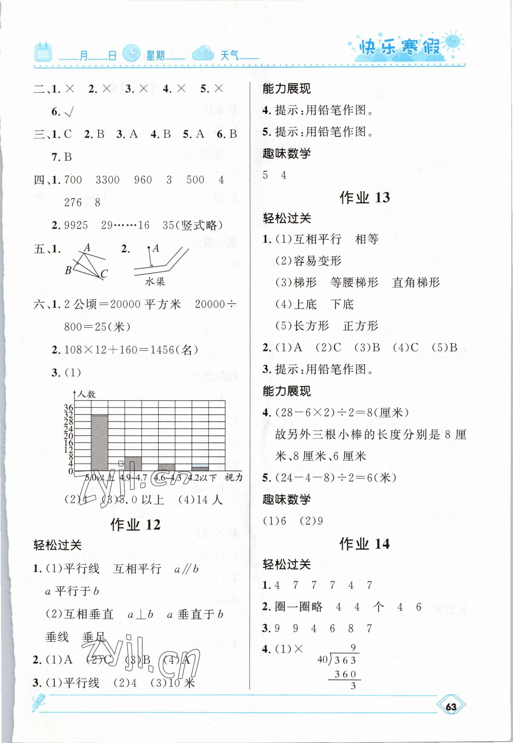 2023年赢在起跑线快乐寒假河北少年儿童出版社四年级数学人教版