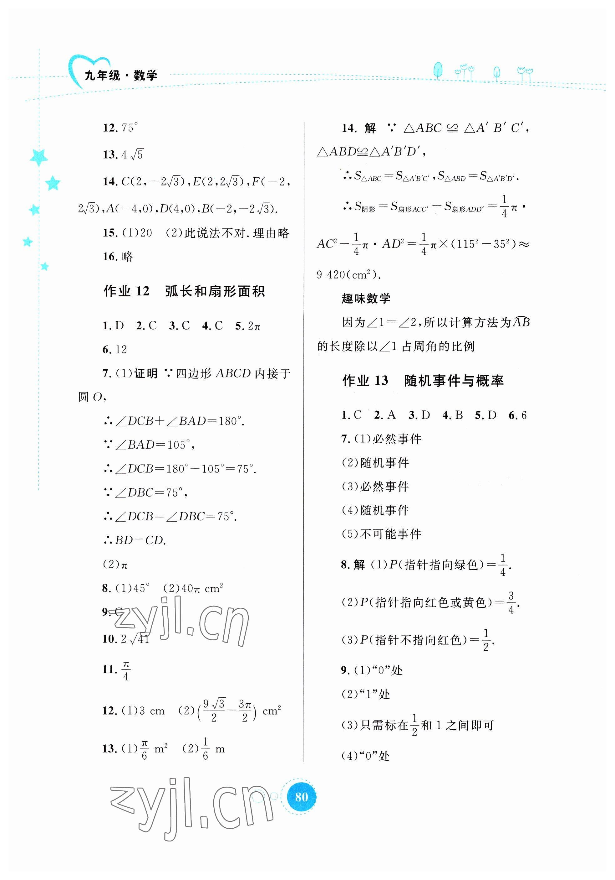 《2023年寒假作业九年级数学内蒙古教育出版社》