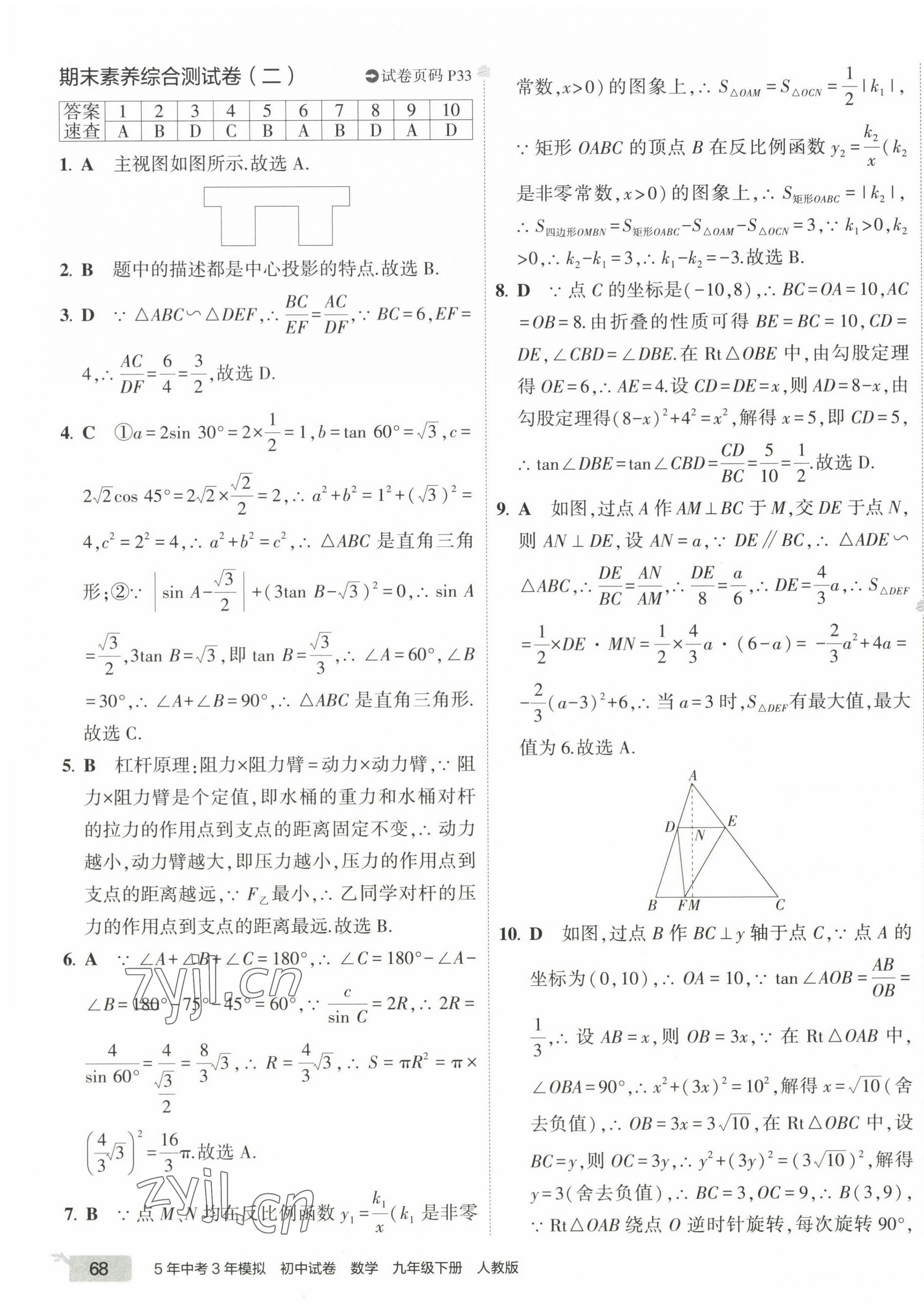 《2023年5年中考3年模拟初中试卷九年级数学下册人教版》