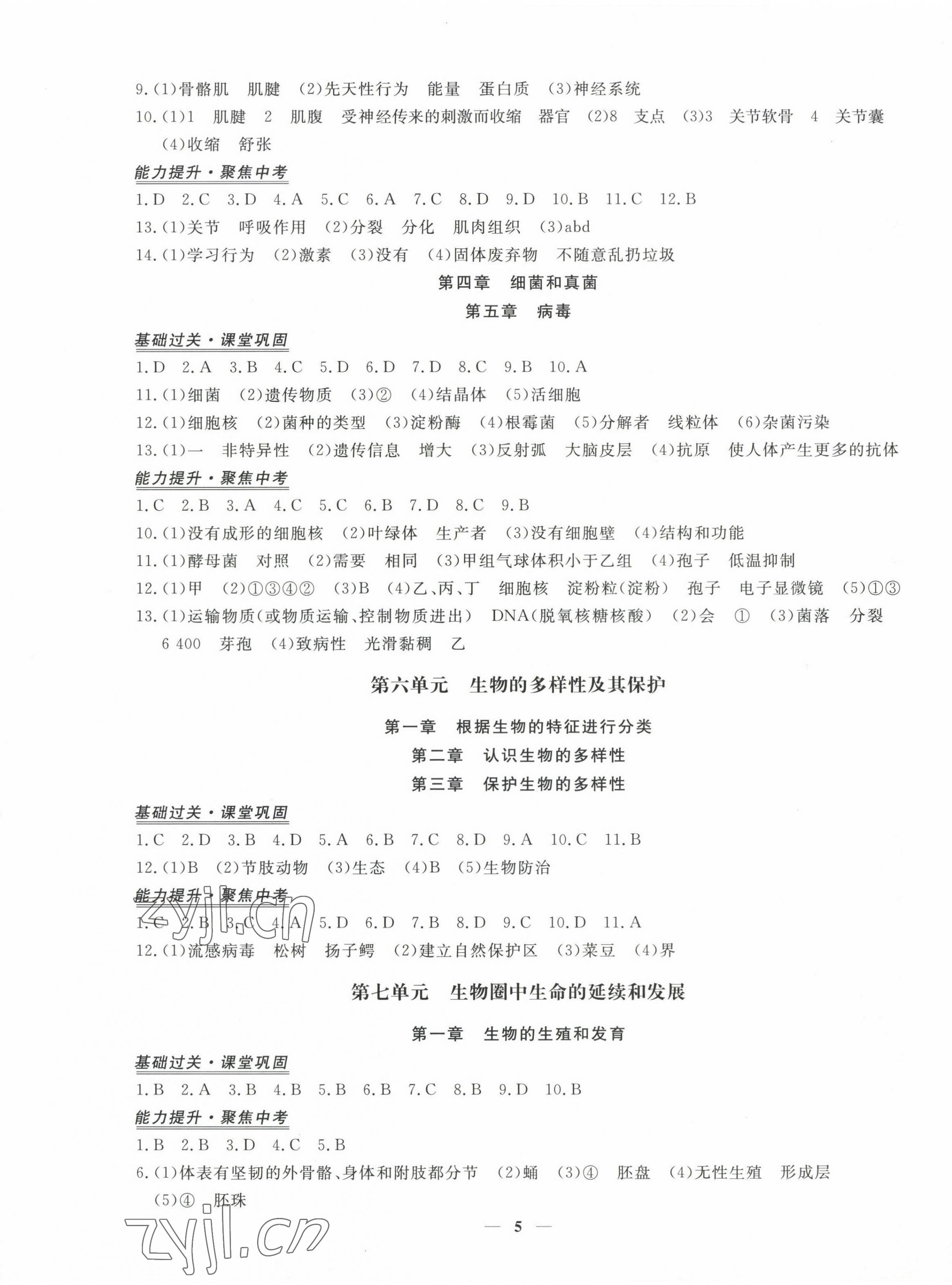 注:目前有些书本章节名称可能整理的还不是很完善,但都是按照顺序排列的,请同学们按照顺序仔细查找。练习册 2023年青于蓝课堂中考总复习生物 答案主要是用来给同学们做完题方便对答案用的,请勿直接抄袭。