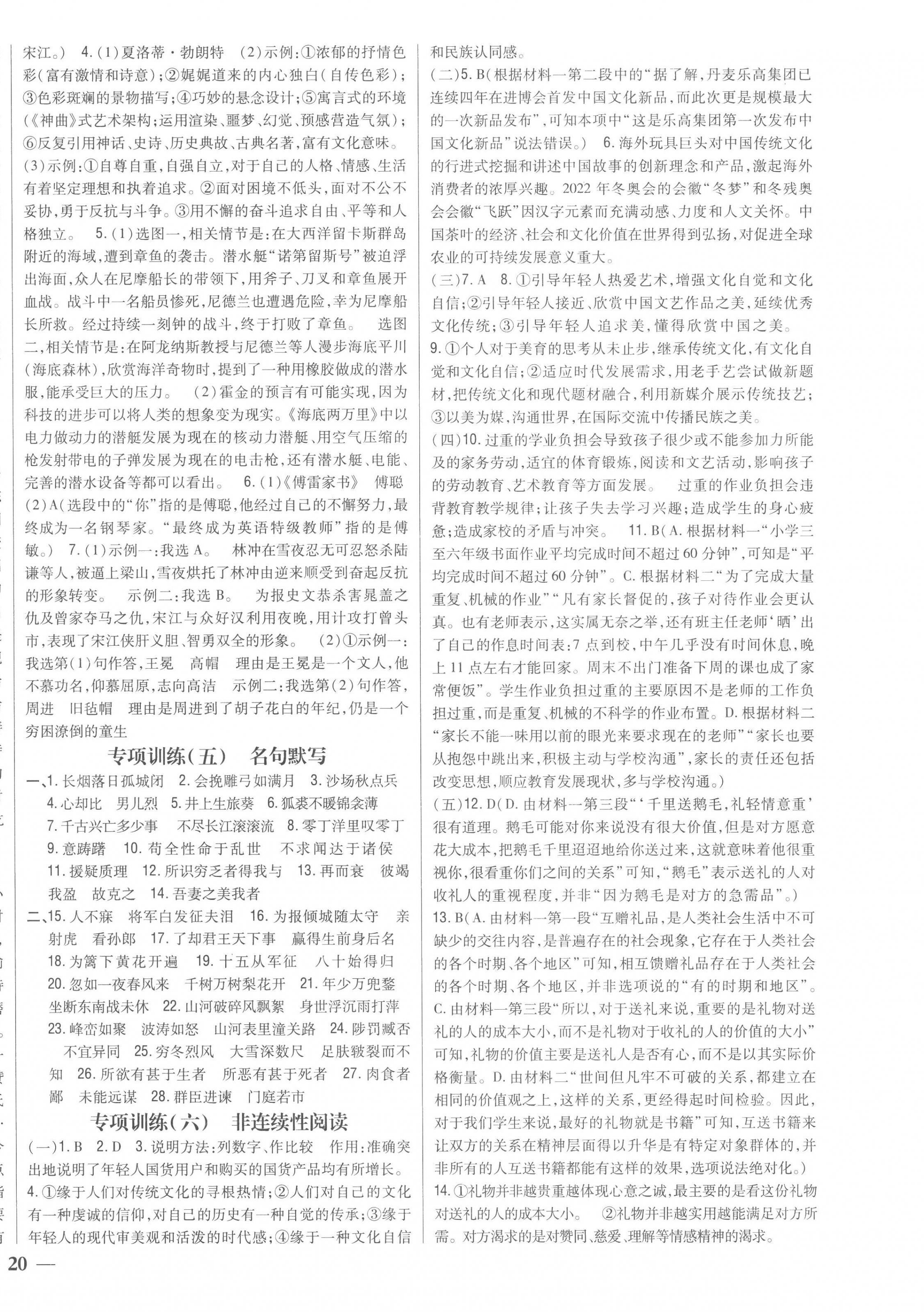 注:目前有些书本章节名称可能整理的还不是很完善,但都是按照顺序排列的,请同学们按照顺序仔细查找。练习册 2023年全科王同步课时练习九年级语文下册人教版 答案主要是用来给同学们做完题方便对答案用的,请勿直接抄袭。