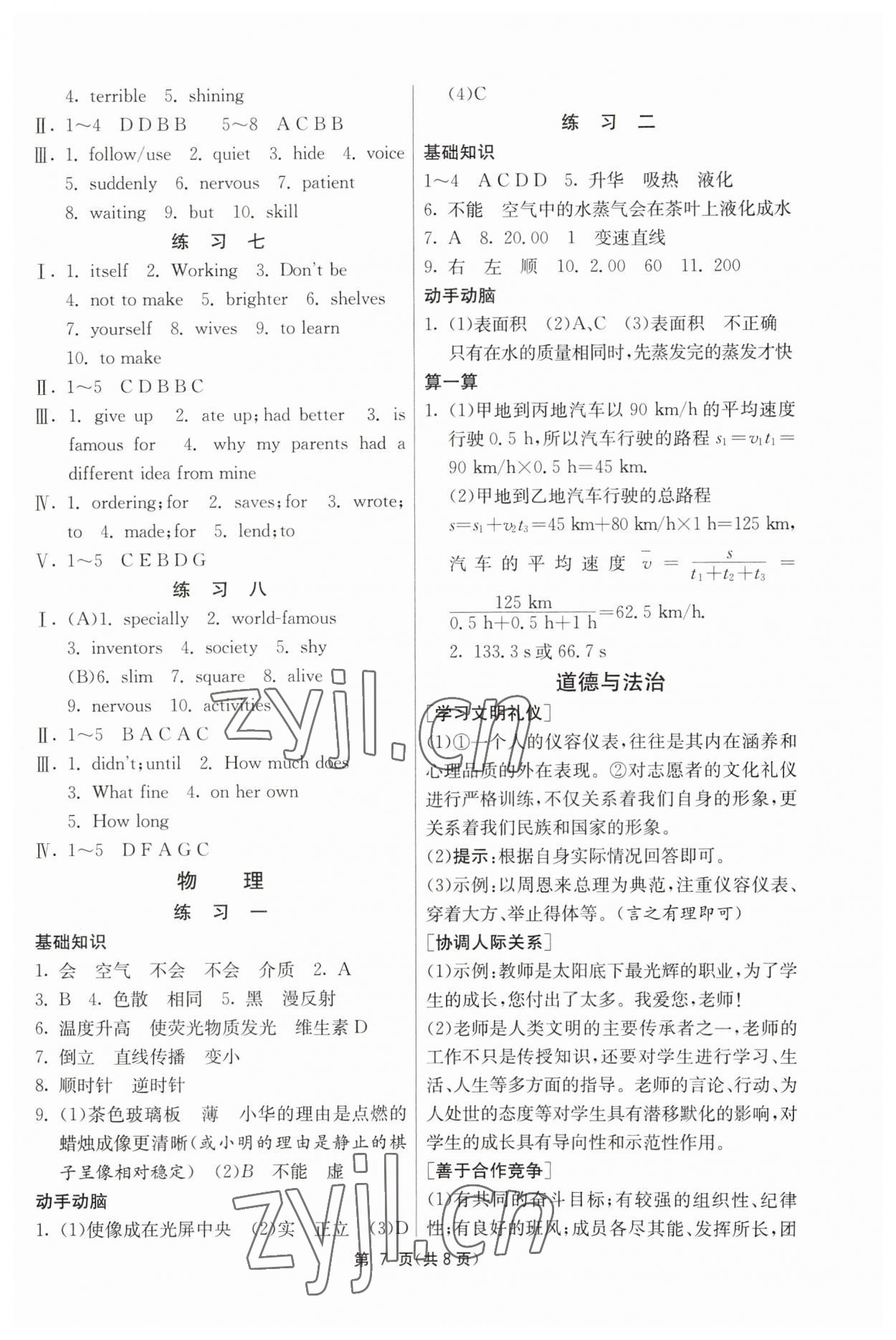 注:目前有些书本章节名称可能整理的还不是很完善,但都是按照顺序排列的,请同学们按照顺序仔细查找。练习册 2023年快乐寒假吉林教育出版社八年级江苏适用 答案主要是用来给同学们做完题方便对答案用的,请勿直接抄袭。