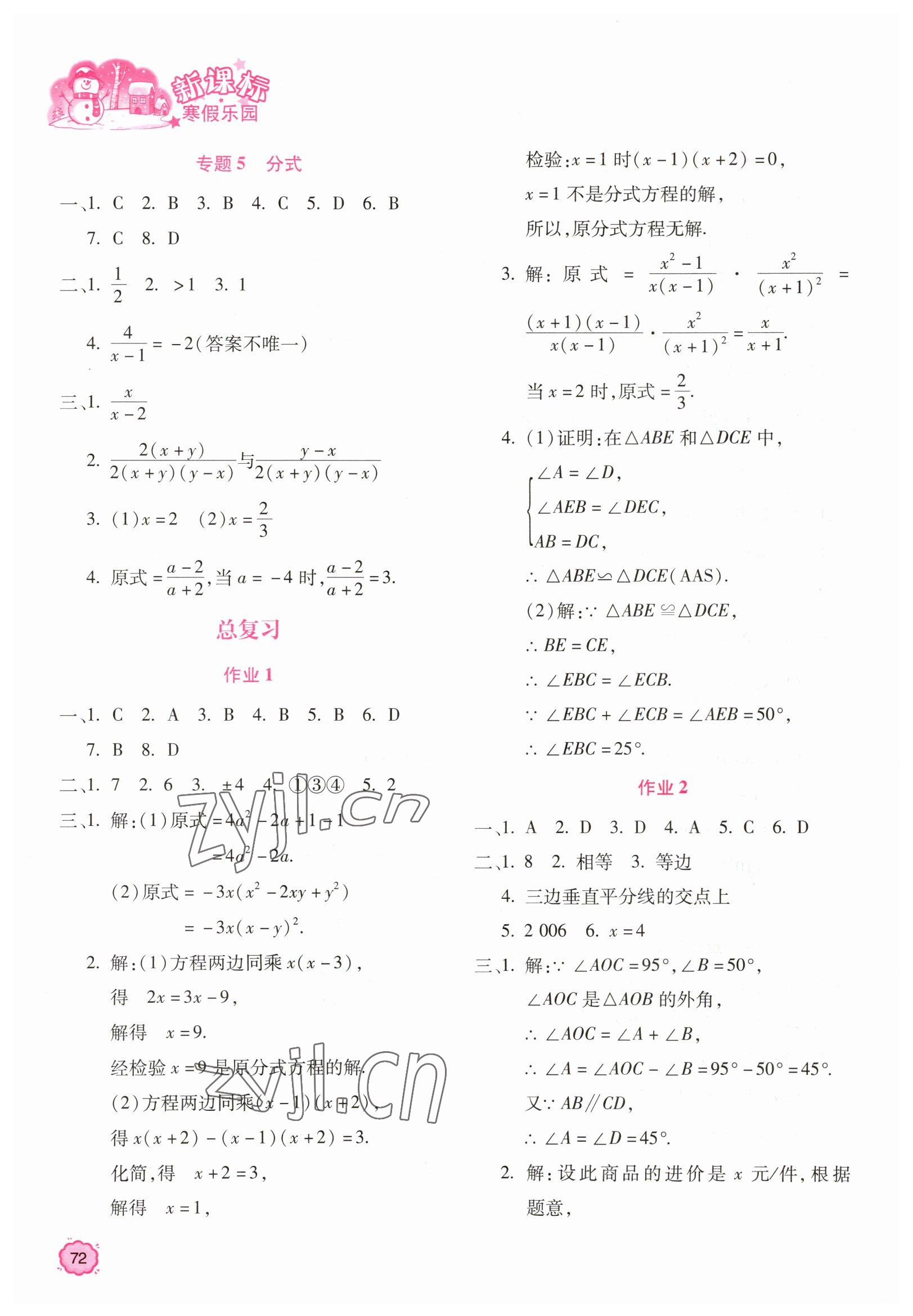 注:目前有些书本章节名称可能整理的还不是很完善,但都是按照顺序排列的,请同学们按照顺序仔细查找。练习册 2023年新课标寒假乐园八年级数学 答案主要是用来给同学们做完题方便对答案用的,请勿直接抄袭。