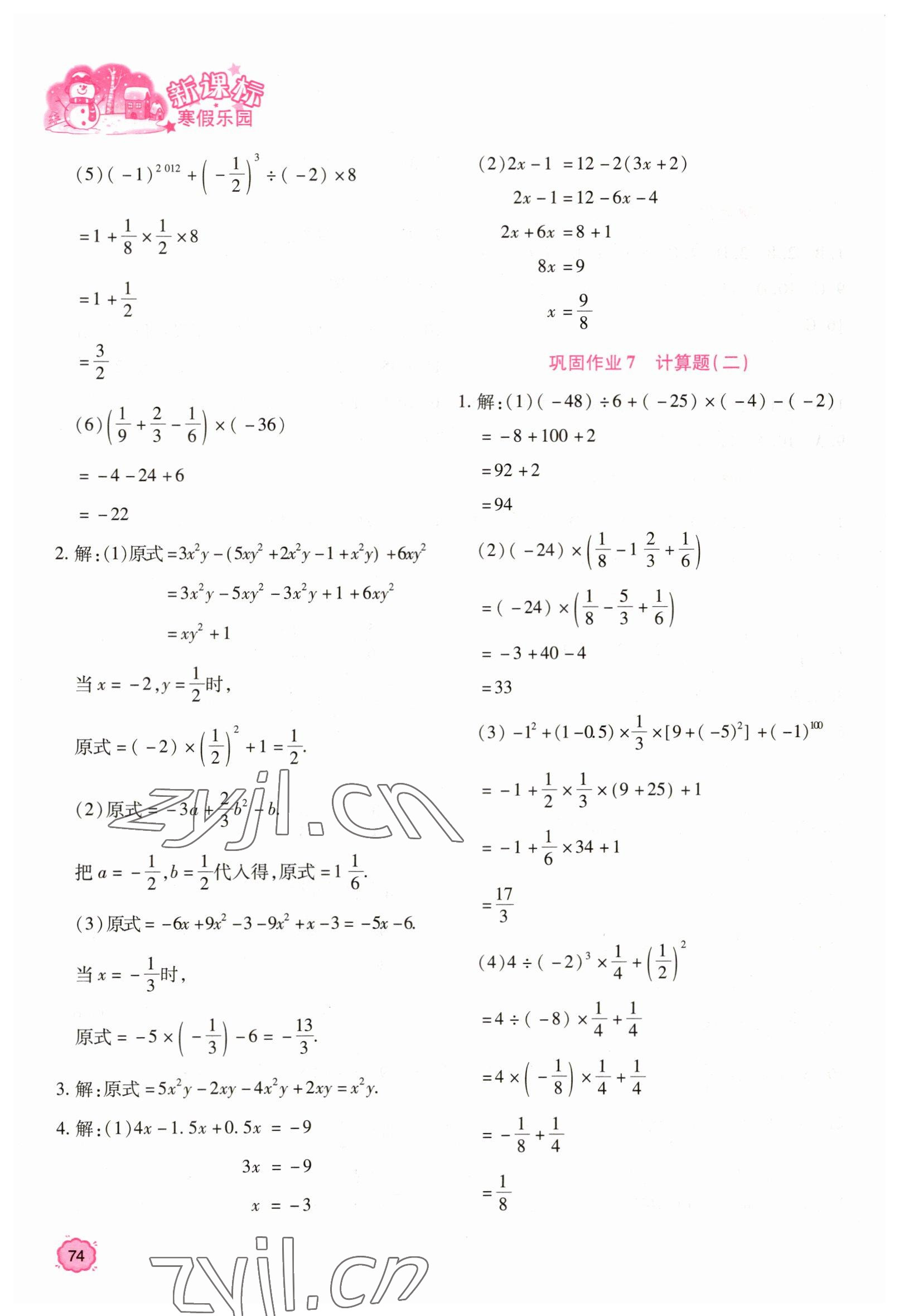 注:目前有些书本章节名称可能整理的还不是很完善,但都是按照顺序排列的,请同学们按照顺序仔细查找。练习册 2023年新课标寒假乐园七年级数学 答案主要是用来给同学们做完题方便对答案用的,请勿直接抄袭。