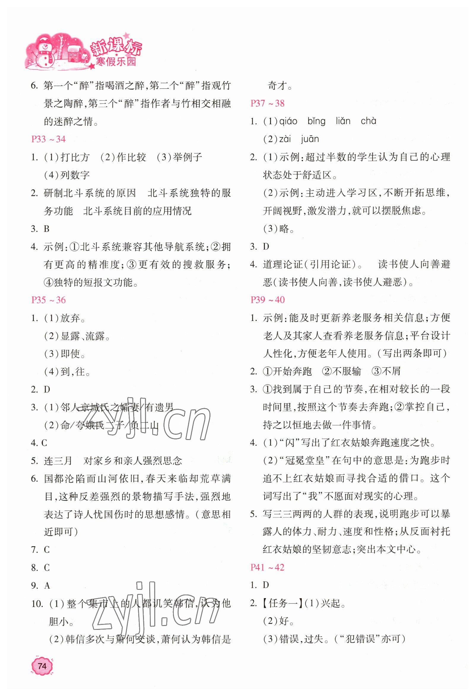 注:目前有些书本章节名称可能整理的还不是很完善,但都是按照顺序排列的,请同学们按照顺序仔细查找。练习册 2023年新课标寒假乐园八年级语文 答案主要是用来给同学们做完题方便对答案用的,请勿直接抄袭。