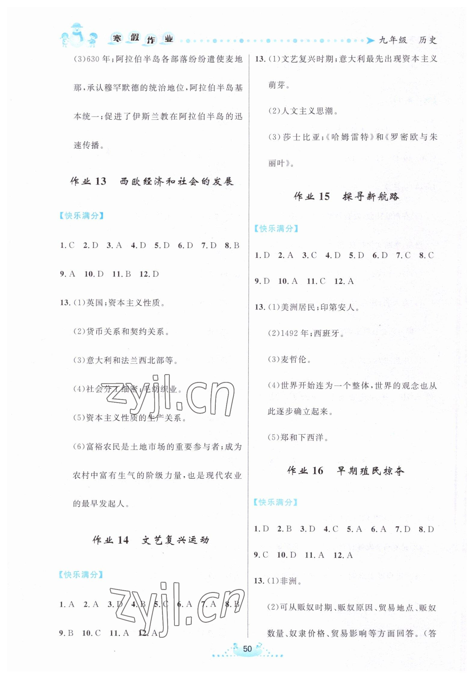 《2023年寒假作业九年级历史内蒙古人民出版社》