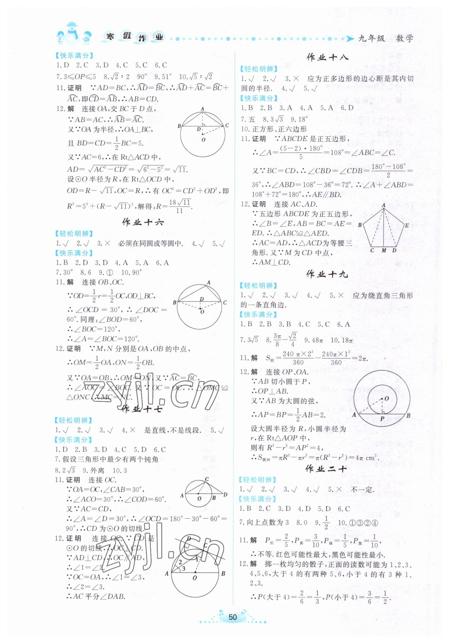 2023年寒假作业九年级数学内蒙古人民出版社
