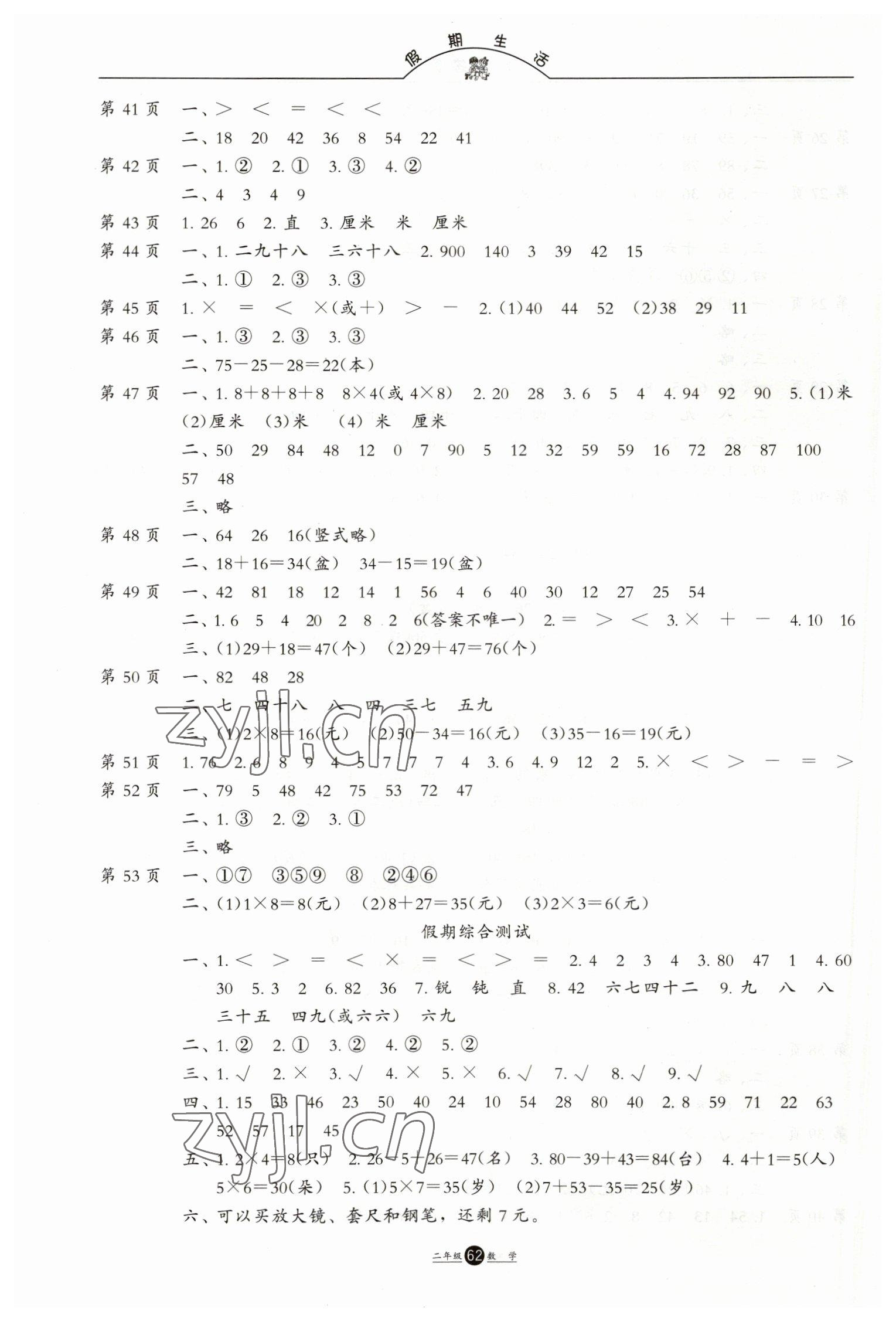 注:目前有些书本章节名称可能整理的还不是很完善,但都是按照顺序排列的,请同学们按照顺序仔细查找。练习册 2023年假期生活二年级数学方圆电子音像出版社 答案主要是用来给同学们做完题方便对答案用的,请勿直接抄袭。