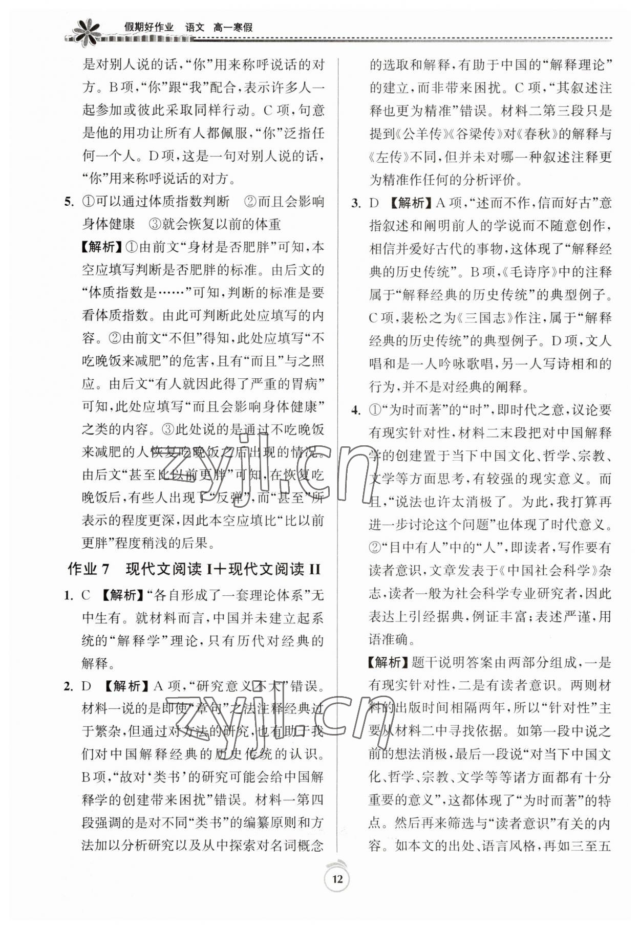 《2023年假期好作业高一语文寒假》