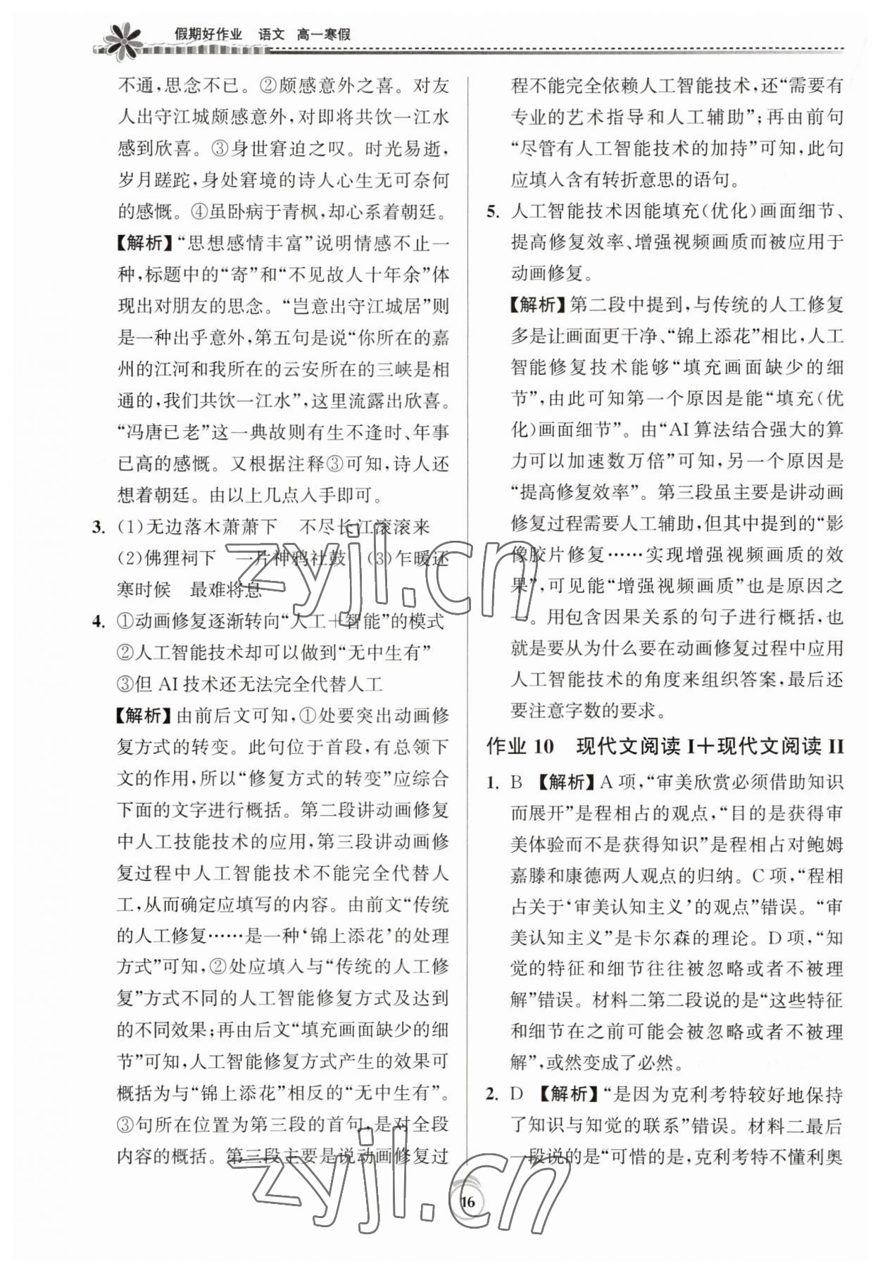 《2023年假期好作业高一语文寒假》