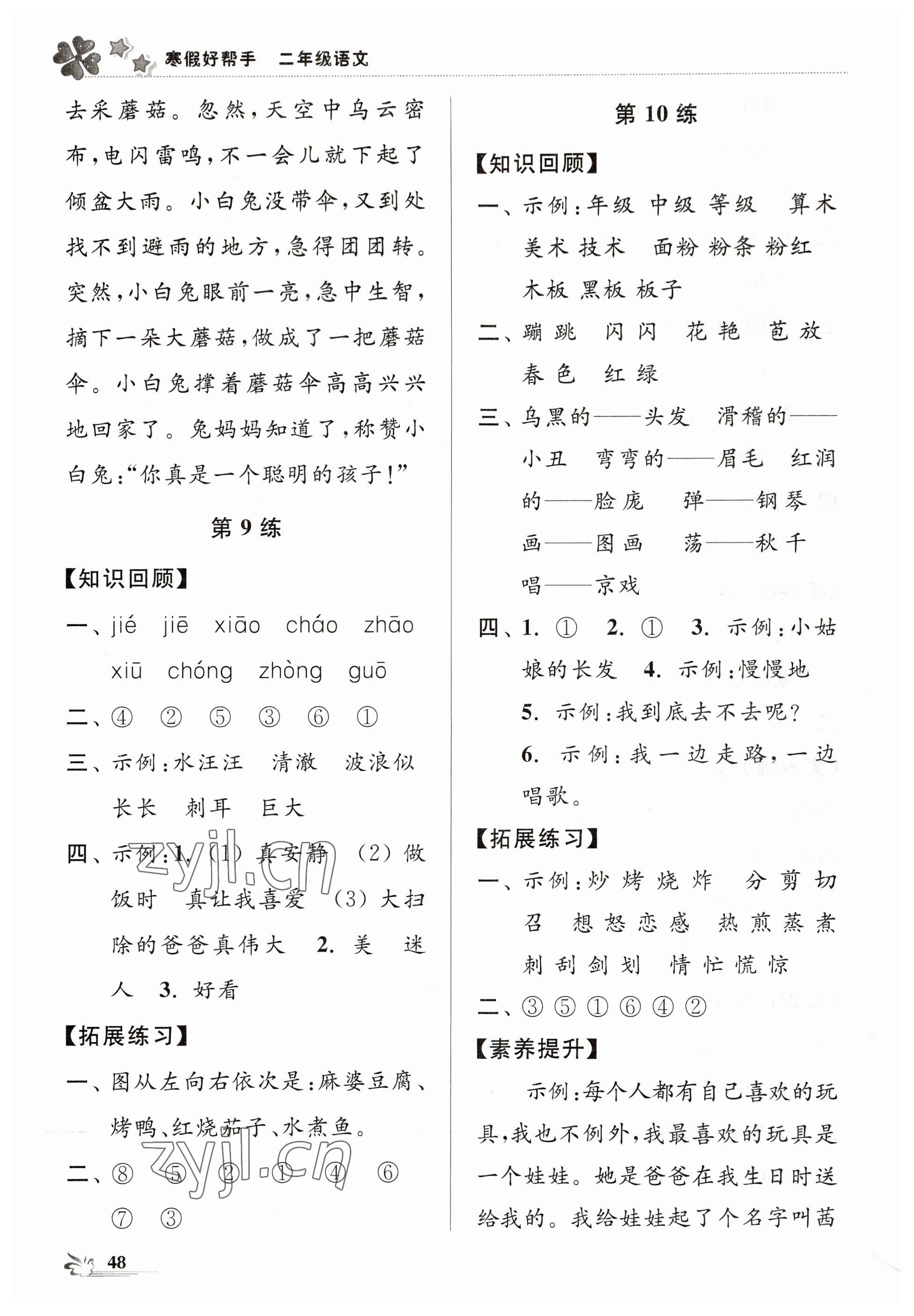 注:目前有些书本章节名称可能整理的还不是很完善,但都是按照顺序排列的,请同学们按照顺序仔细查找。练习册 2023年寒假好帮手二年级语文人教版 答案主要是用来给同学们做完题方便对答案用的,请勿直接抄袭。
