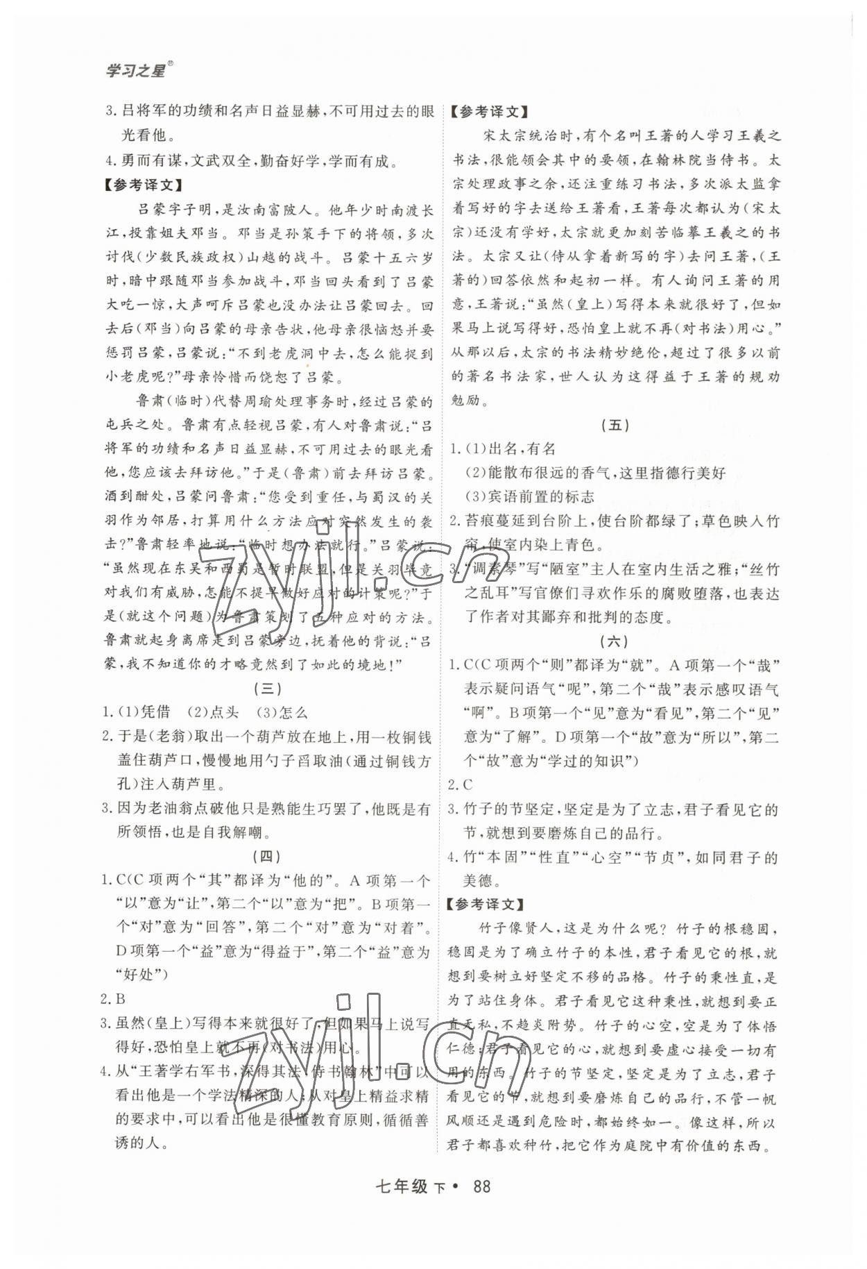 注:目前有些书本章节名称可能整理的还不是很完善,但都是按照顺序排列的,请同学们按照顺序仔细查找。练习册 2023年博师在线七年级语文下册人教版大连专版 答案主要是用来给同学们做完题方便对答案用的,请勿直接抄袭。