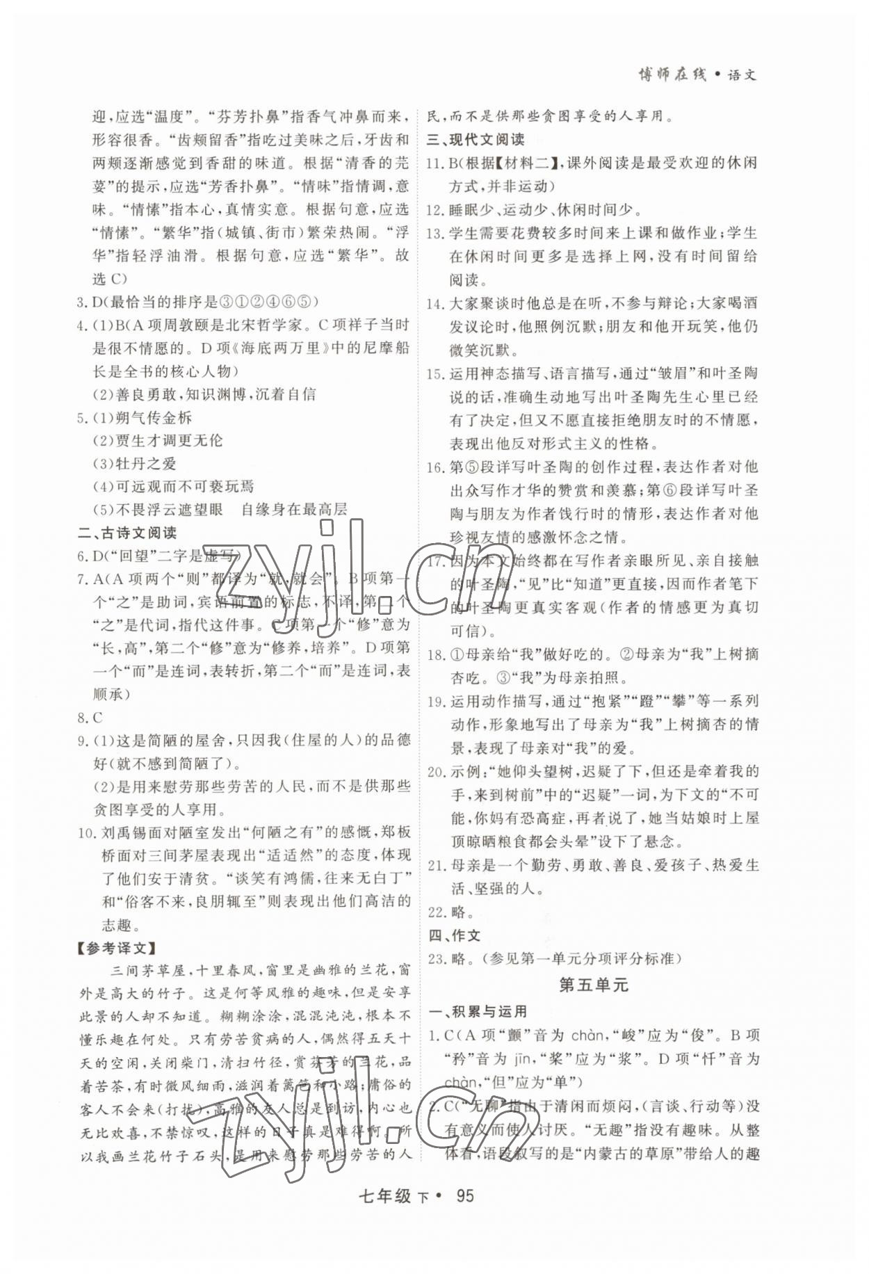 注:目前有些书本章节名称可能整理的还不是很完善,但都是按照顺序排列的,请同学们按照顺序仔细查找。练习册 2023年博师在线七年级语文下册人教版大连专版 答案主要是用来给同学们做完题方便对答案用的,请勿直接抄袭。