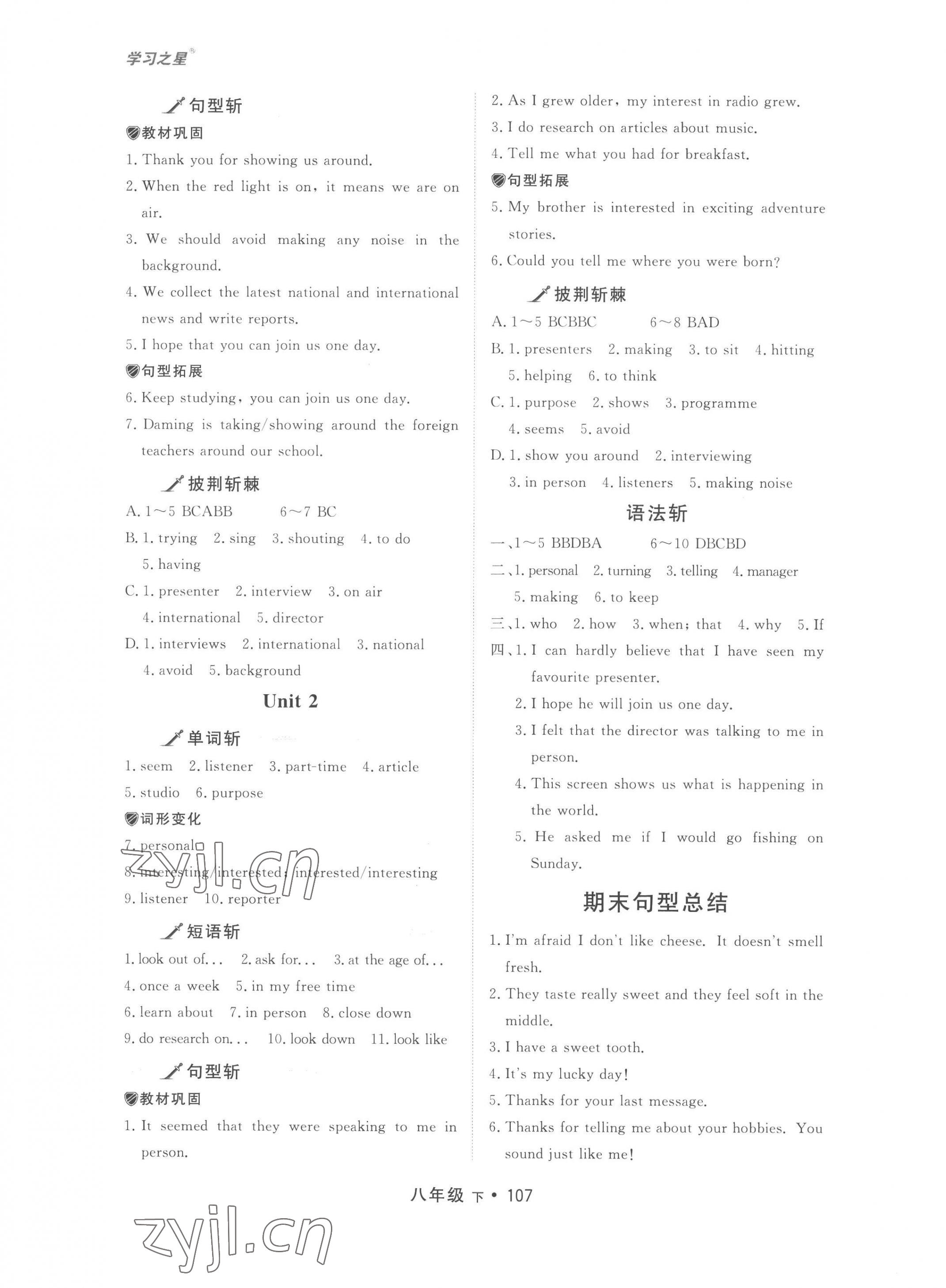 注:目前有些书本章节名称可能整理的还不是很完善,但都是按照顺序排列的,请同学们按照顺序仔细查找。练习册 2023年博师在线八年级英语下册外研版大连专版 答案主要是用来给同学们做完题方便对答案用的,请勿直接抄袭。