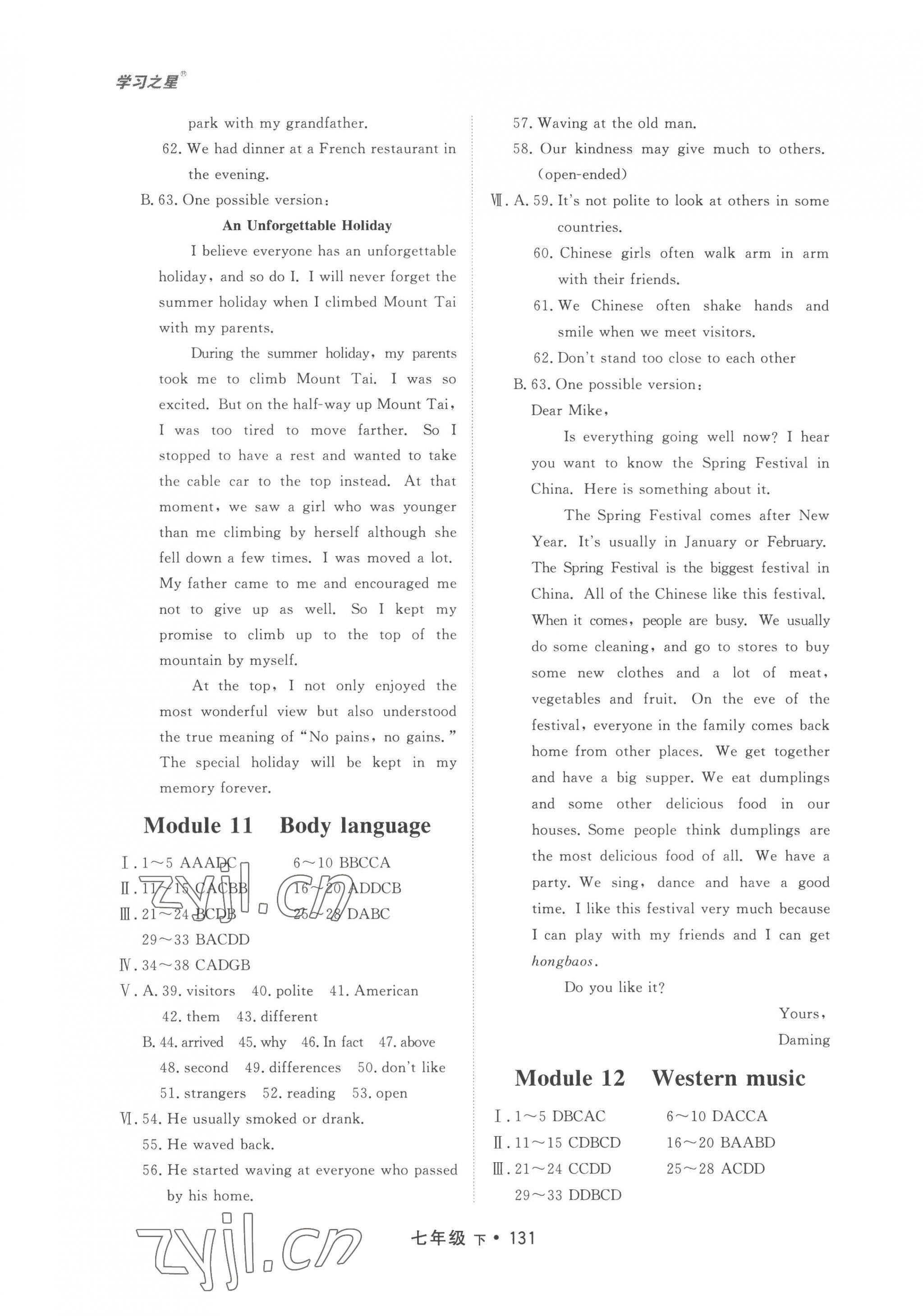注:目前有些书本章节名称可能整理的还不是很完善,但都是按照顺序排列的,请同学们按照顺序仔细查找。练习册 2023年博师在线七年级英语下册外研版大连专版 答案主要是用来给同学们做完题方便对答案用的,请勿直接抄袭。