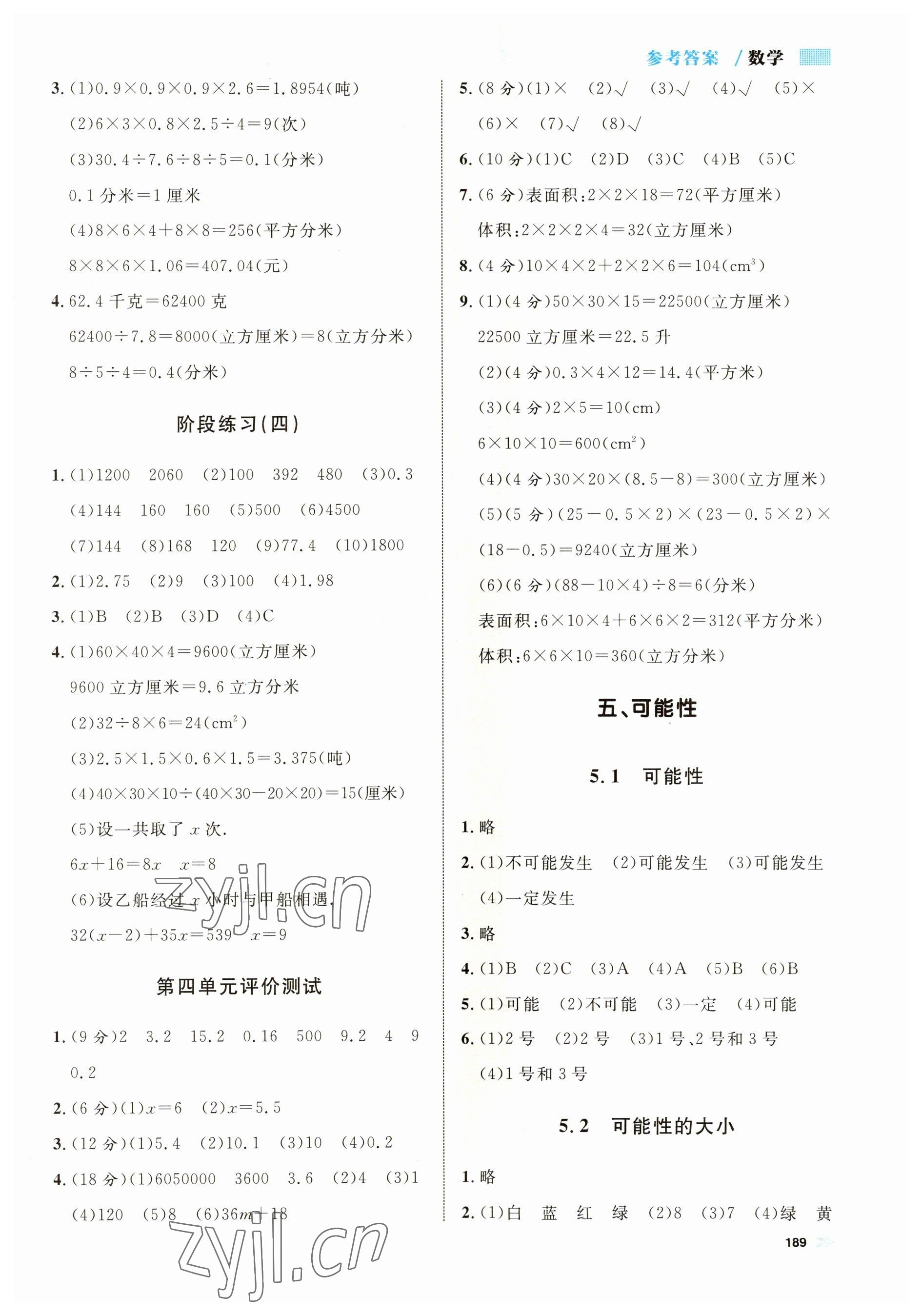 注:目前有些书本章节名称可能整理的还不是很完善,但都是按照顺序排列的,请同学们按照顺序仔细查找。练习册 2023年上海作业五年级数学下册沪教版五四制 答案主要是用来给同学们做完题方便对答案用的,请勿直接抄袭。
