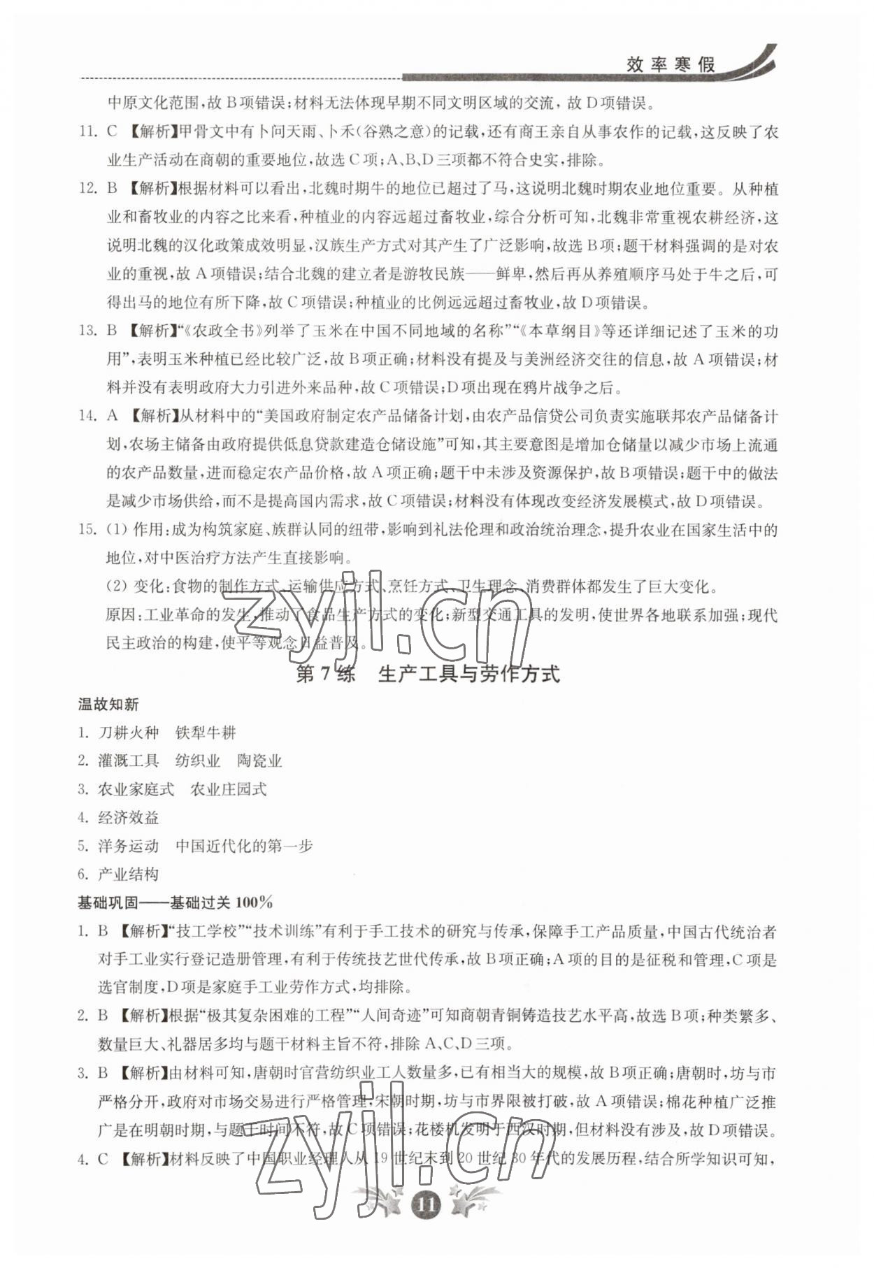 2023年效率寒假高二历史