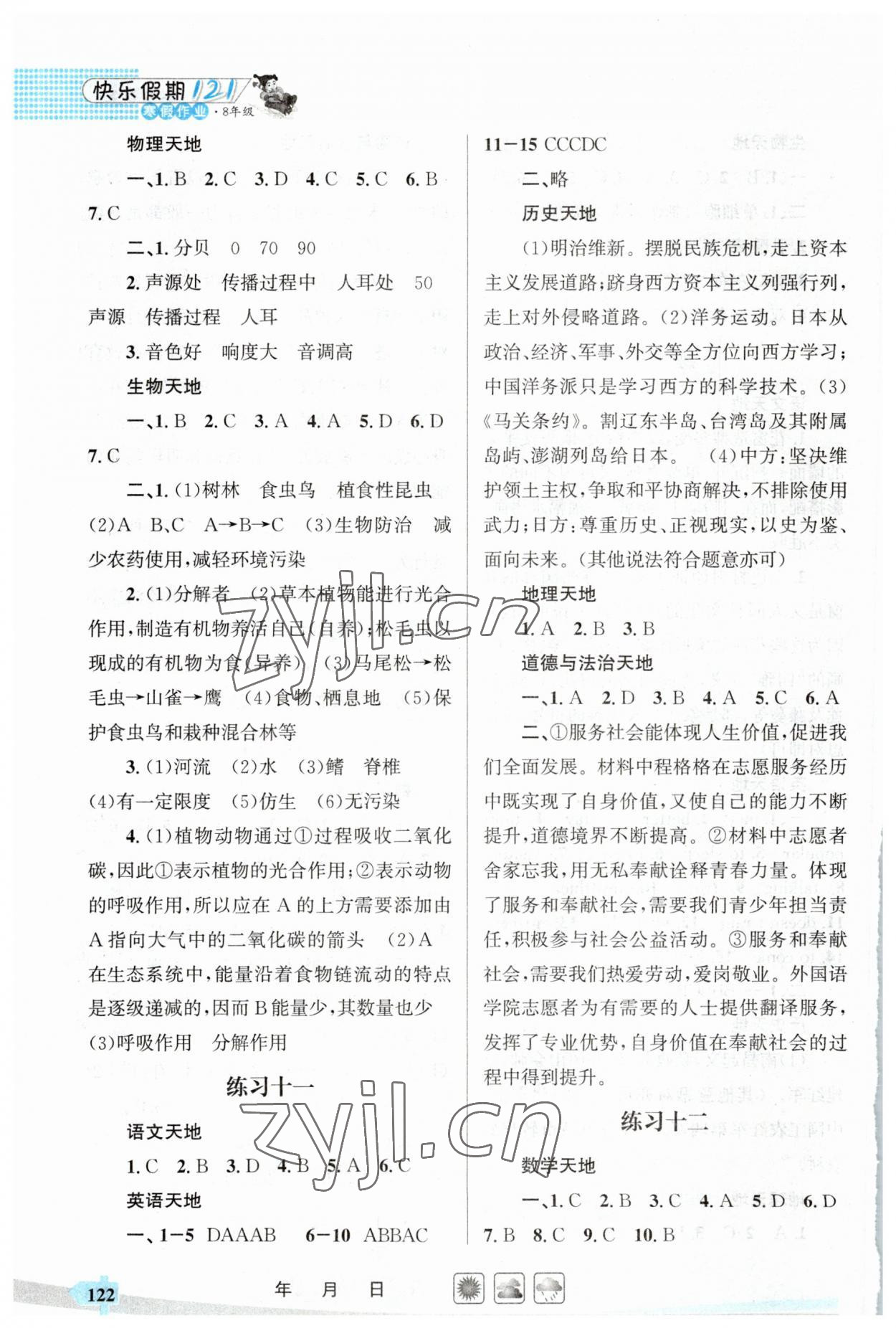 注:目前有些书本章节名称可能整理的还不是很完善,但都是按照顺序排列的,请同学们按照顺序仔细查找。练习册 2023年快乐假期121寒假作业八年级 答案主要是用来给同学们做完题方便对答案用的,请勿直接抄袭。