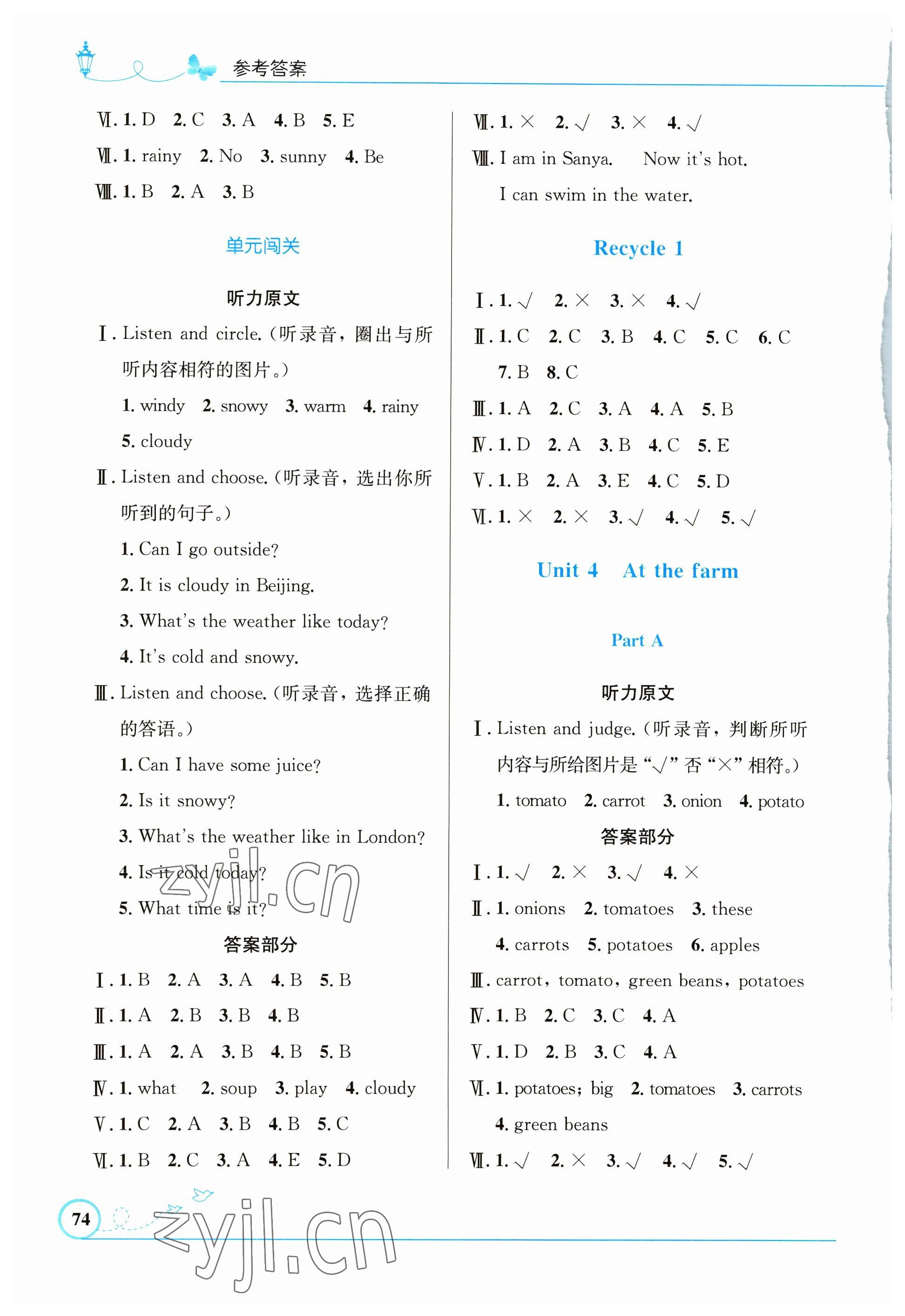 注:目前有些书本章节名称可能整理的还不是很完善,但都是按照顺序排列的,请同学们按照顺序仔细查找。练习册 2023年同步测控优化设计四年级英语下册人教版福建专版 答案主要是用来给同学们做完题方便对答案用的,请勿直接抄袭。