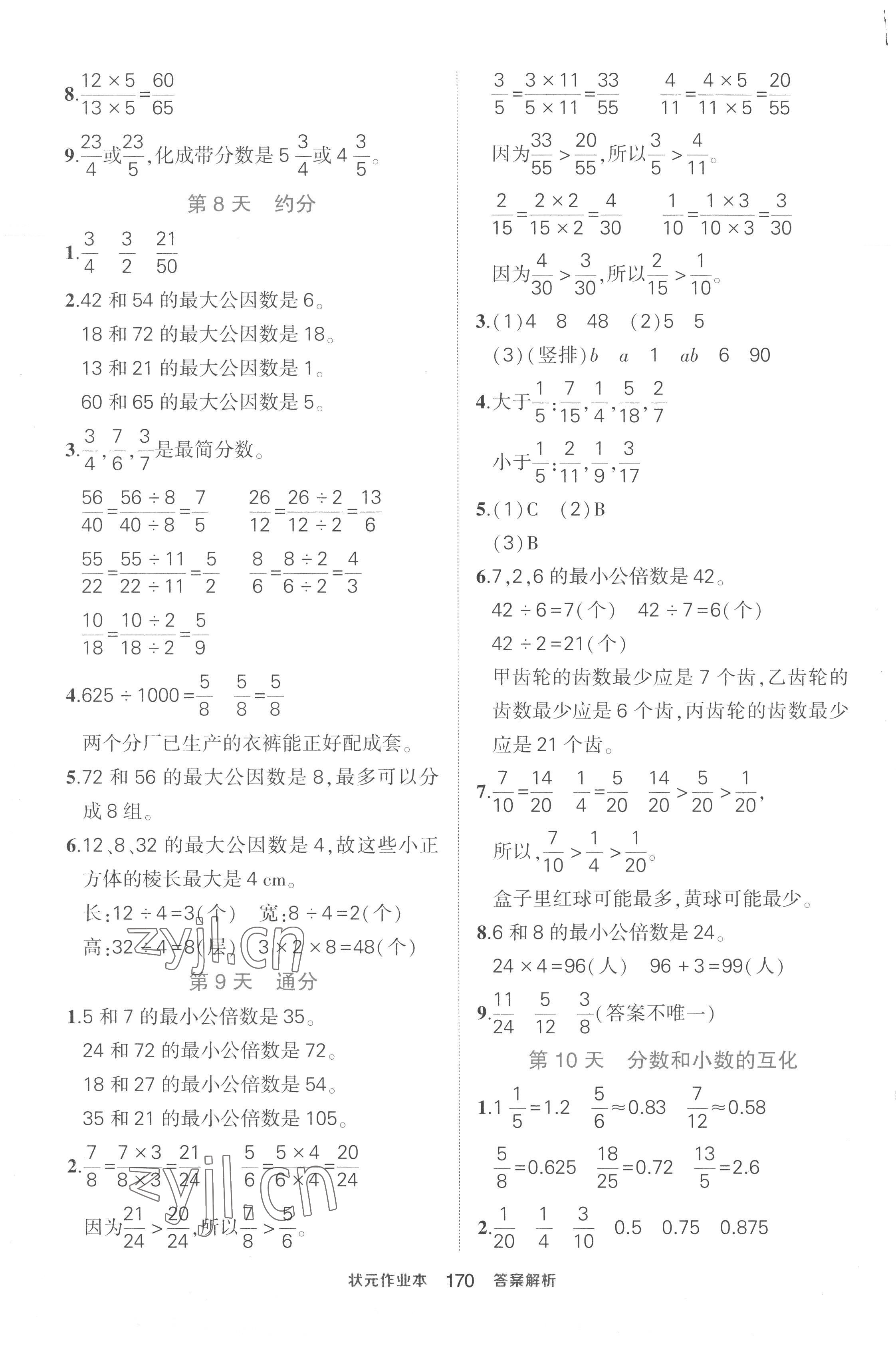 2023年黄冈状元成才路状元作业本五年级数学下册人教版贵州专版