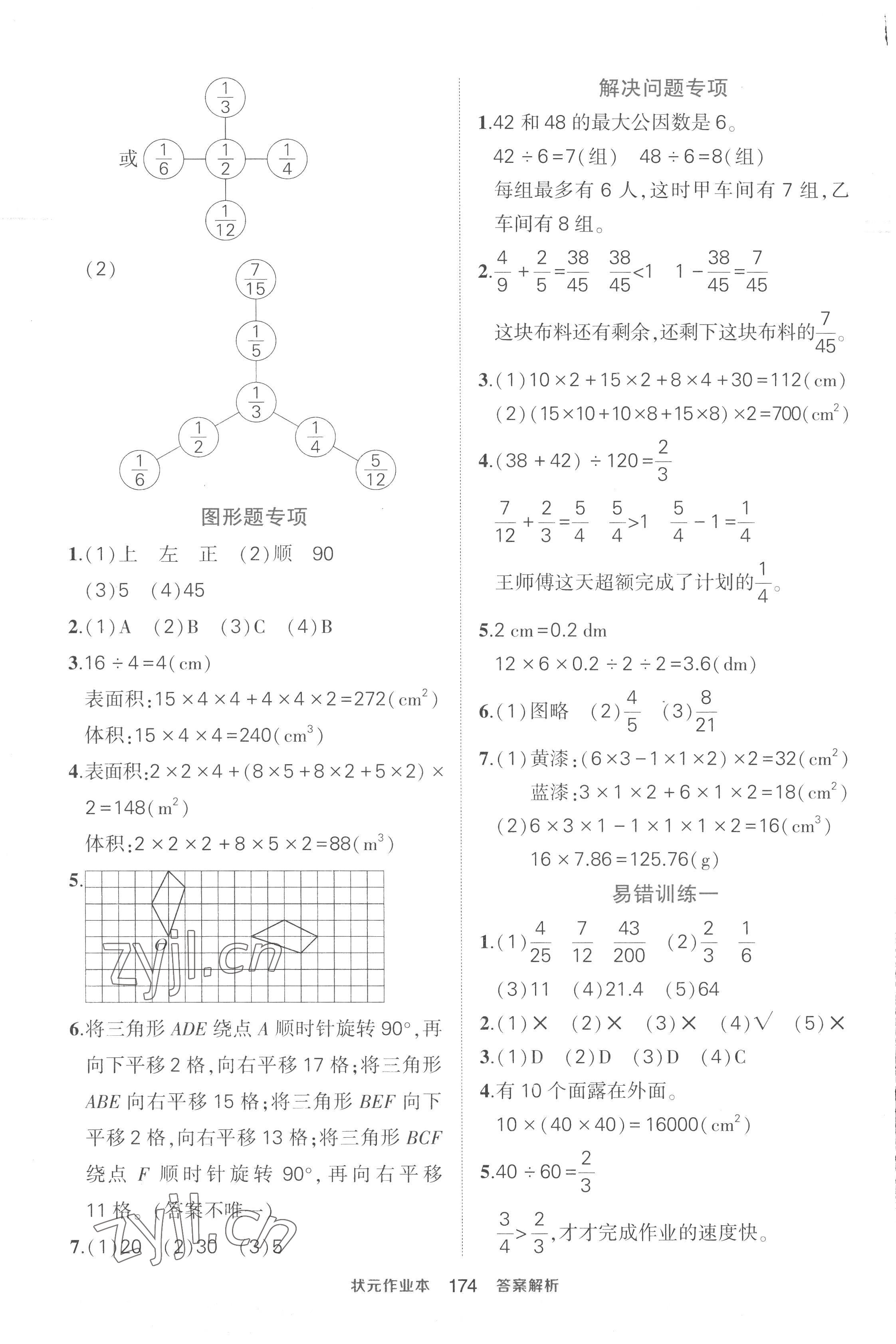 注:目前有些书本章节名称可能整理的还不是很完善,但都是按照顺序排列的,请同学们按照顺序仔细查找。练习册 2023年黄冈状元成才路状元作业本五年级数学下册人教版贵州专版 答案主要是用来给同学们做完题方便对答案用的,请勿直接抄袭。