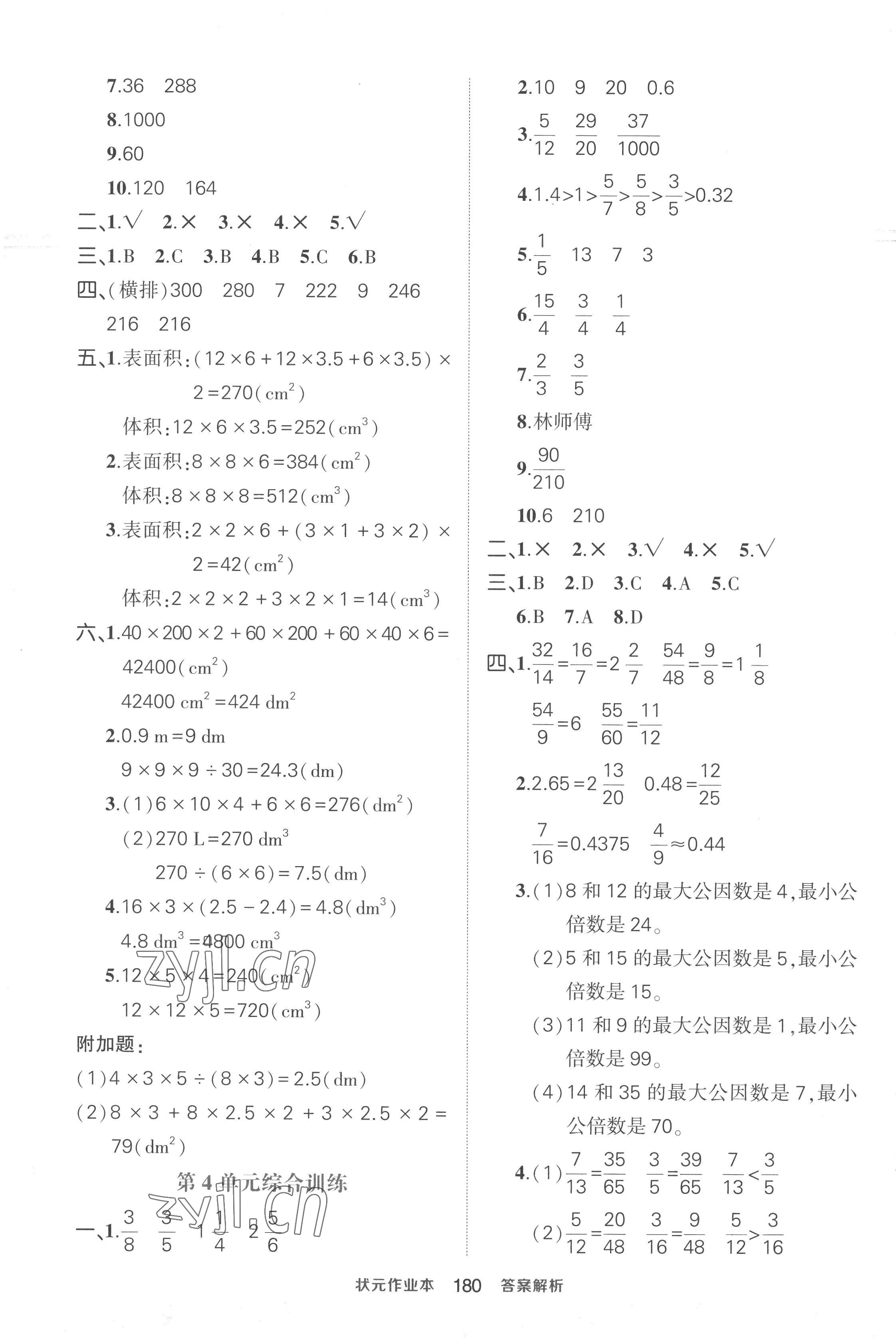 2023年黄冈状元成才路状元作业本五年级数学下册人教版贵州专版