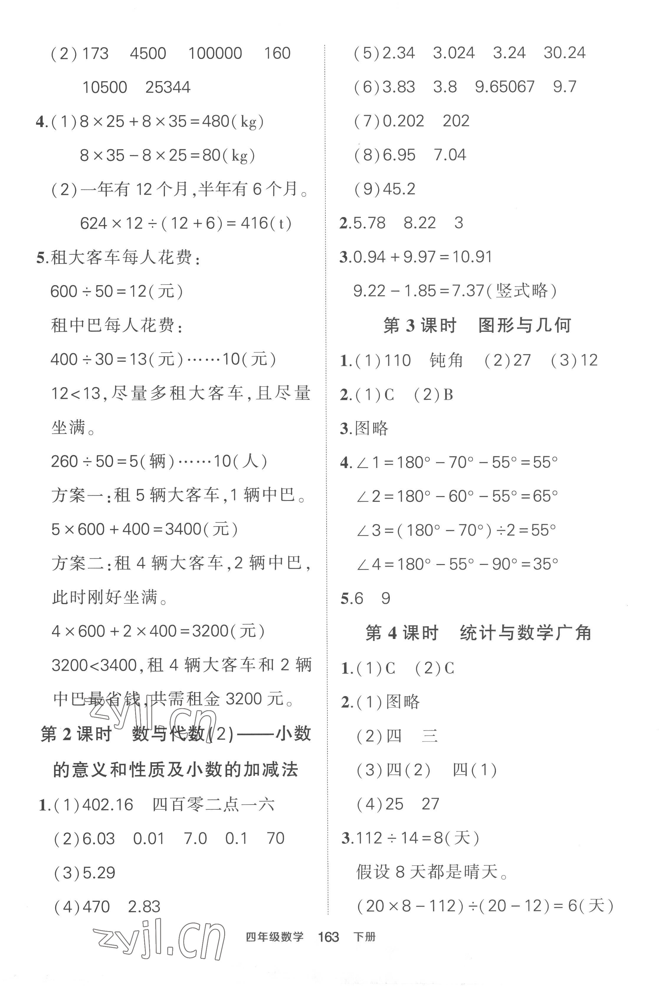2023年黄冈状元成才路状元作业本四年级数学下册人教版贵州专版