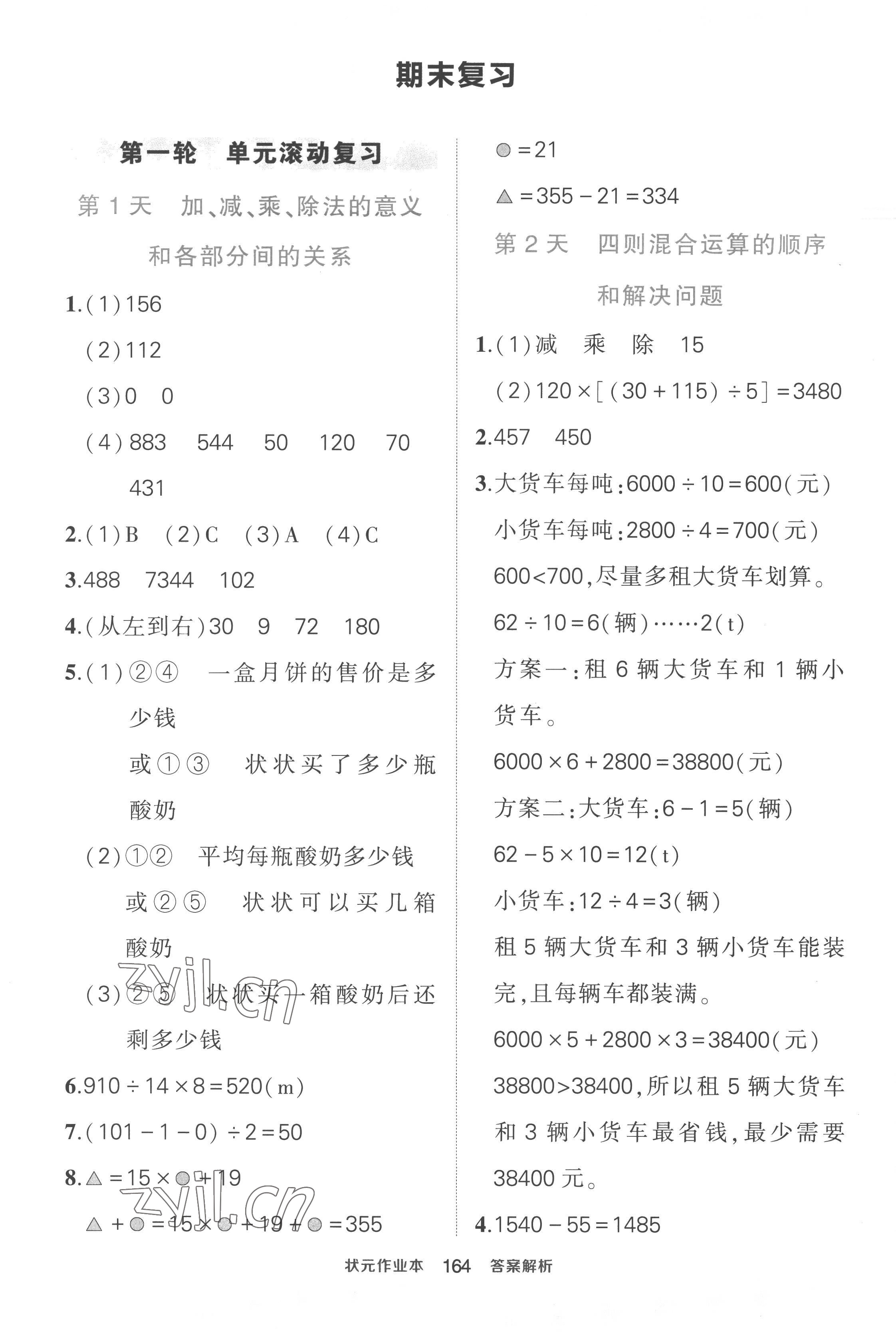 注:目前有些书本章节名称可能整理的还不是很完善,但都是按照顺序排列的,请同学们按照顺序仔细查找。练习册 2023年黄冈状元成才路状元作业本四年级数学下册人教版贵州专版 答案主要是用来给同学们做完题方便对答案用的,请勿直接抄袭。