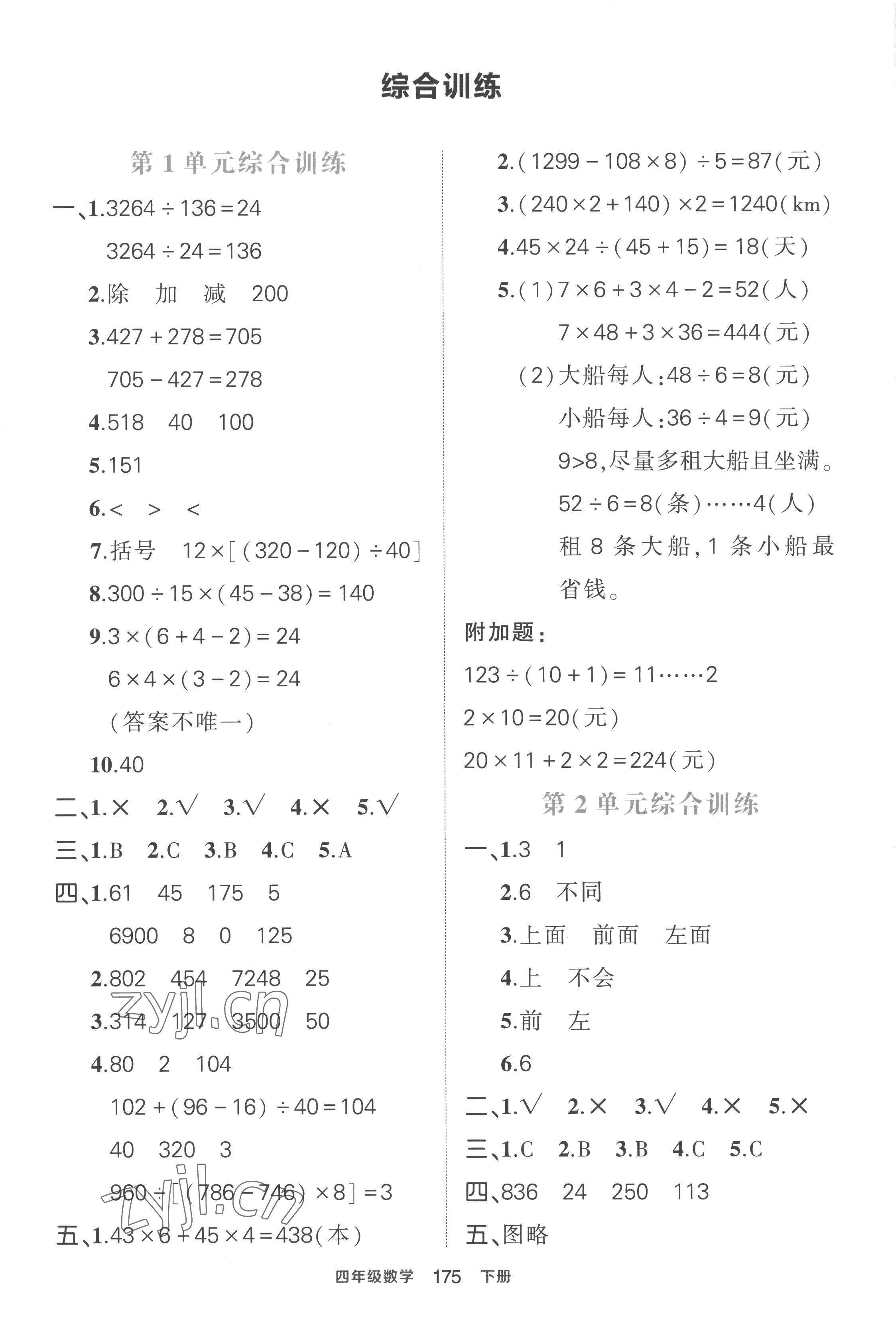 注:目前有些书本章节名称可能整理的还不是很完善,但都是按照顺序排列的,请同学们按照顺序仔细查找。练习册 2023年黄冈状元成才路状元作业本四年级数学下册人教版贵州专版 答案主要是用来给同学们做完题方便对答案用的,请勿直接抄袭。