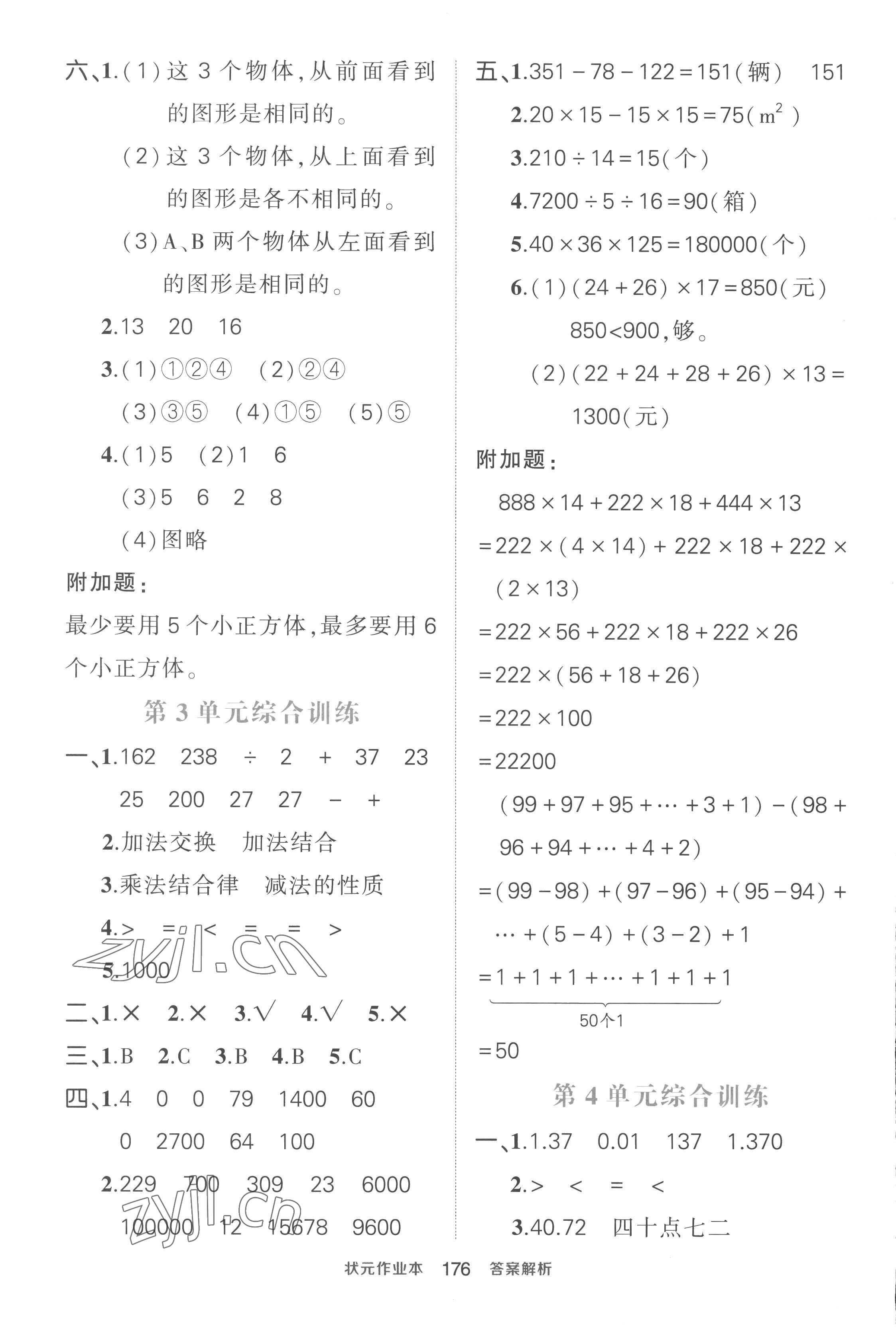 注:目前有些书本章节名称可能整理的还不是很完善,但都是按照顺序排列的,请同学们按照顺序仔细查找。练习册 2023年黄冈状元成才路状元作业本四年级数学下册人教版贵州专版 答案主要是用来给同学们做完题方便对答案用的,请勿直接抄袭。