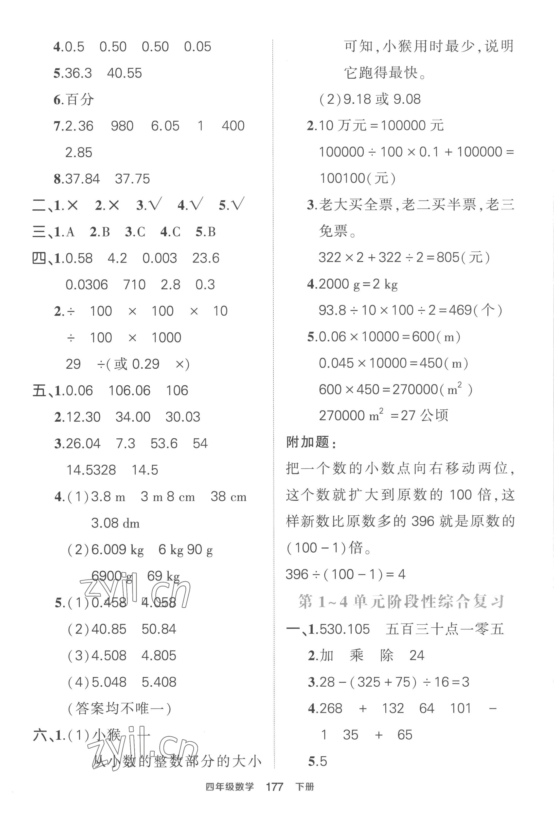 2023年黄冈状元成才路状元作业本四年级数学下册人教版贵州专版