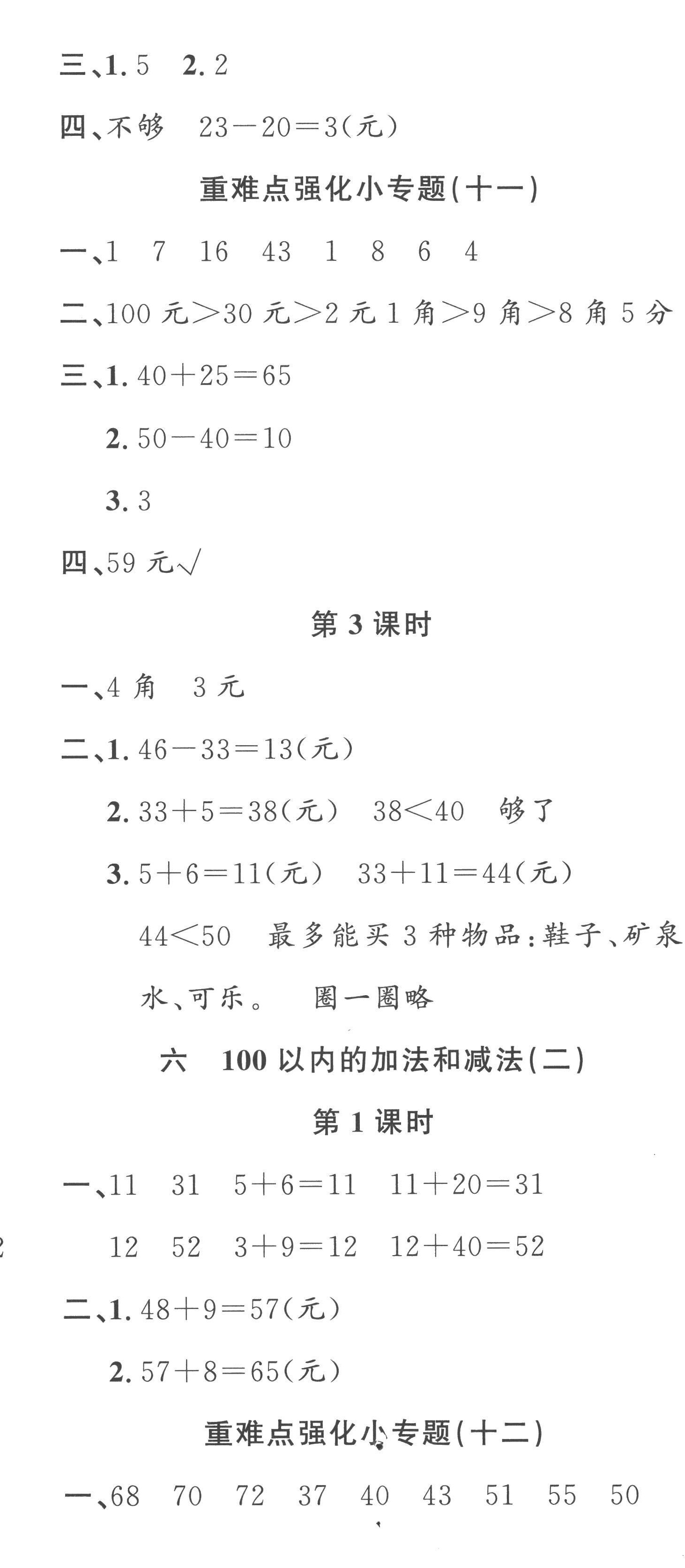 注:目前有些书本章节名称可能整理的还不是很完善,但都是按照顺序排列的,请同学们按照顺序仔细查找。练习册 2023年名校课堂一年级数学下册苏教版 答案主要是用来给同学们做完题方便对答案用的,请勿直接抄袭。