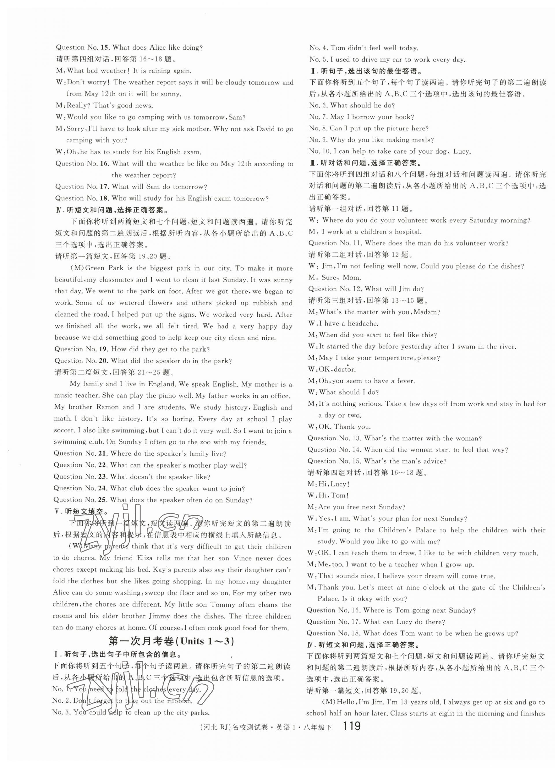 注:目前有些书本章节名称可能整理的还不是很完善,但都是按照顺序排列的,请同学们按照顺序仔细查找。练习册 2023年名校测试卷八年级英语下册人教版河北专版 答案主要是用来给同学们做完题方便对答案用的,请勿直接抄袭。