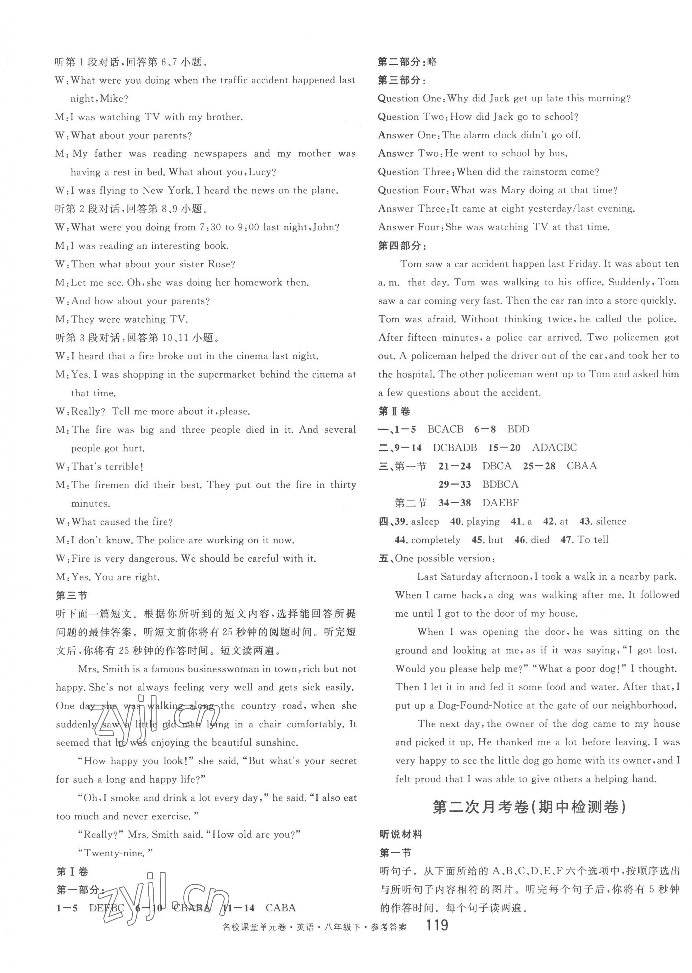 注:目前有些书本章节名称可能整理的还不是很完善,但都是按照顺序排列的,请同学们按照顺序仔细查找。练习册 2023年名校课堂单元卷八年级英语下册人教版黄冈孝感咸宁专版 答案主要是用来给同学们做完题方便对答案用的,请勿直接抄袭。
