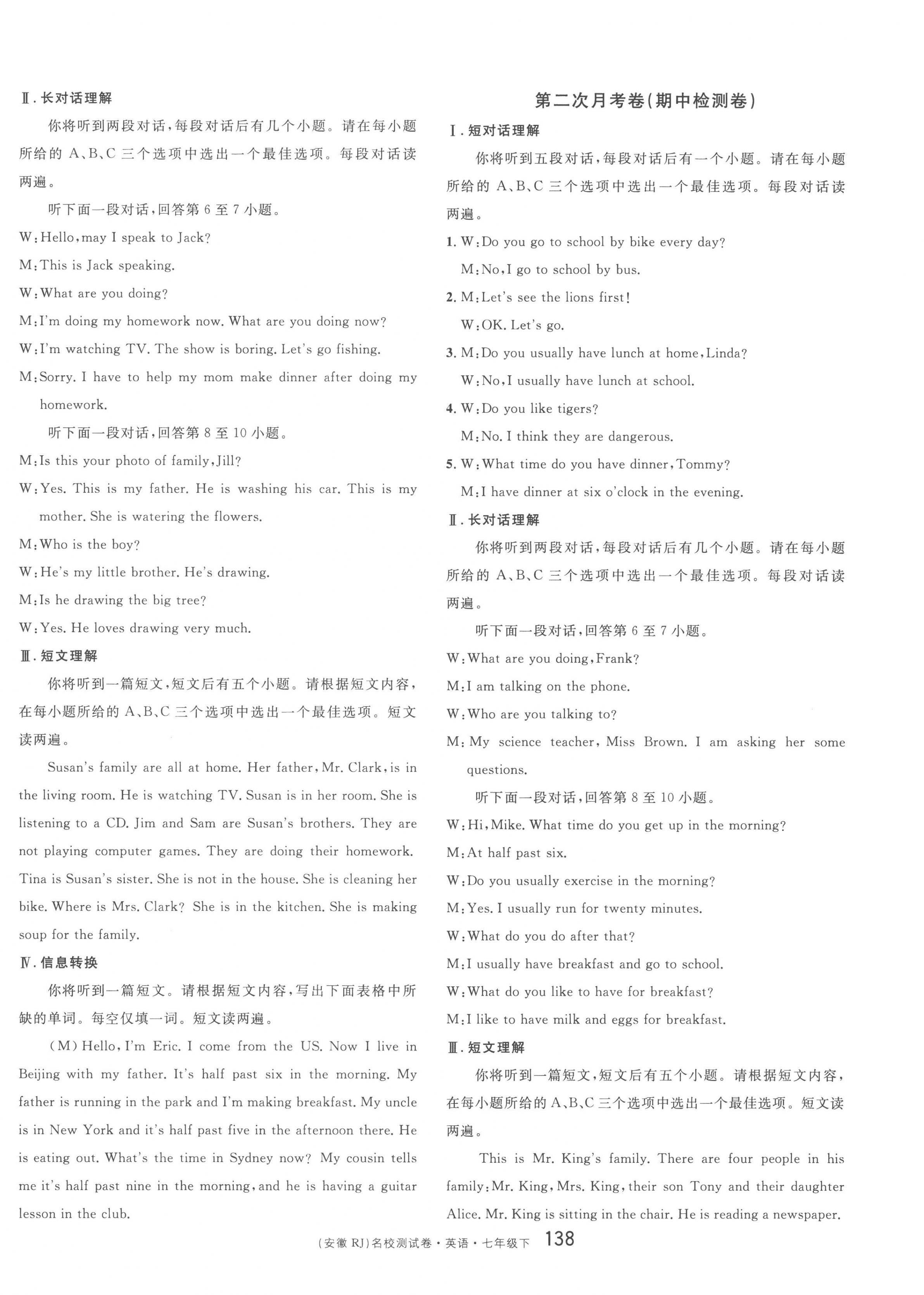 2023年名校课堂单元卷七年级英语下册人教版安徽专版