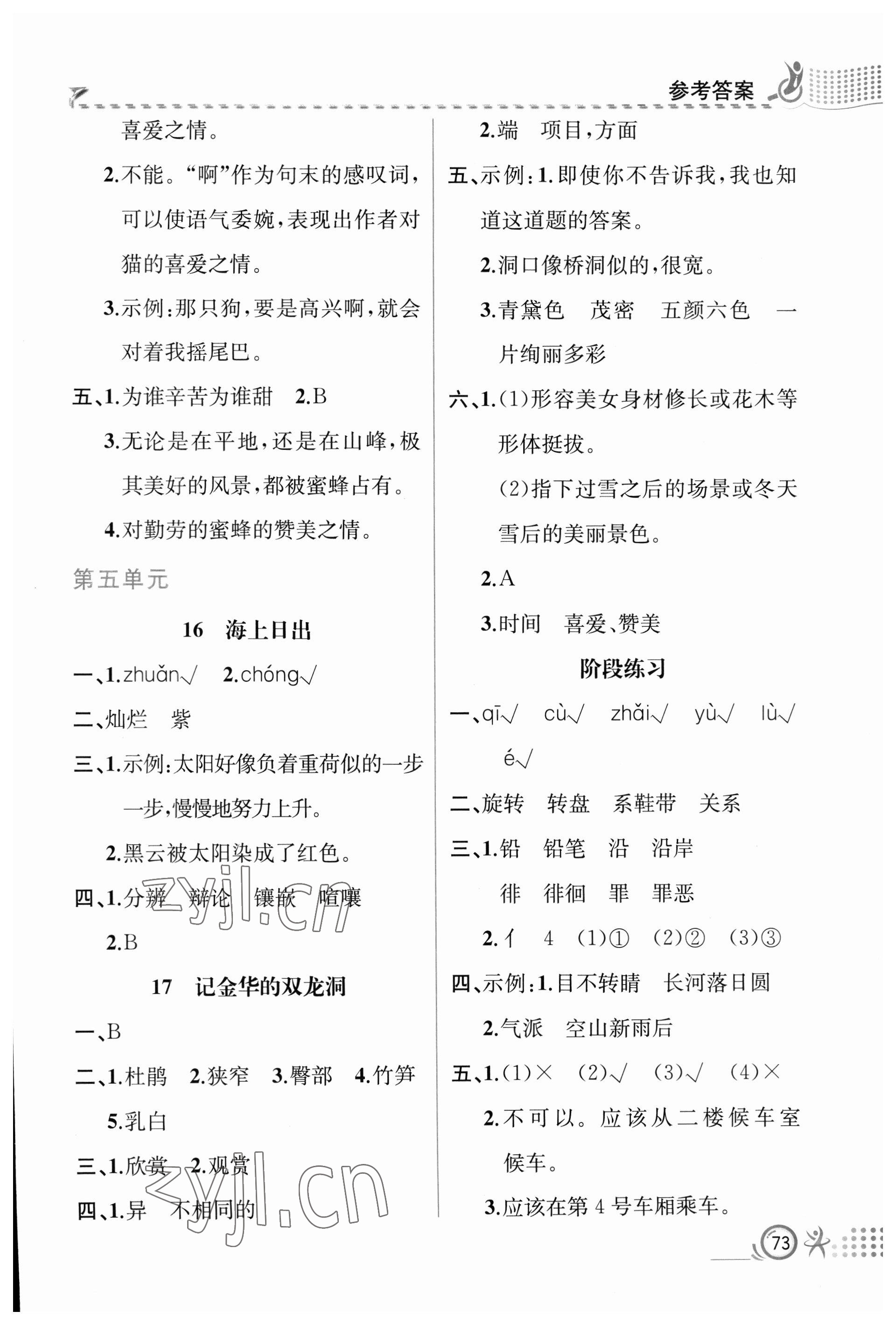 注:目前有些书本章节名称可能整理的还不是很完善,但都是按照顺序排列的,请同学们按照顺序仔细查找。练习册 2023年人教金学典同步解析与测评四年级语文下册人教版福建专版 答案主要是用来给同学们做完题方便对答案用的,请勿直接抄袭。