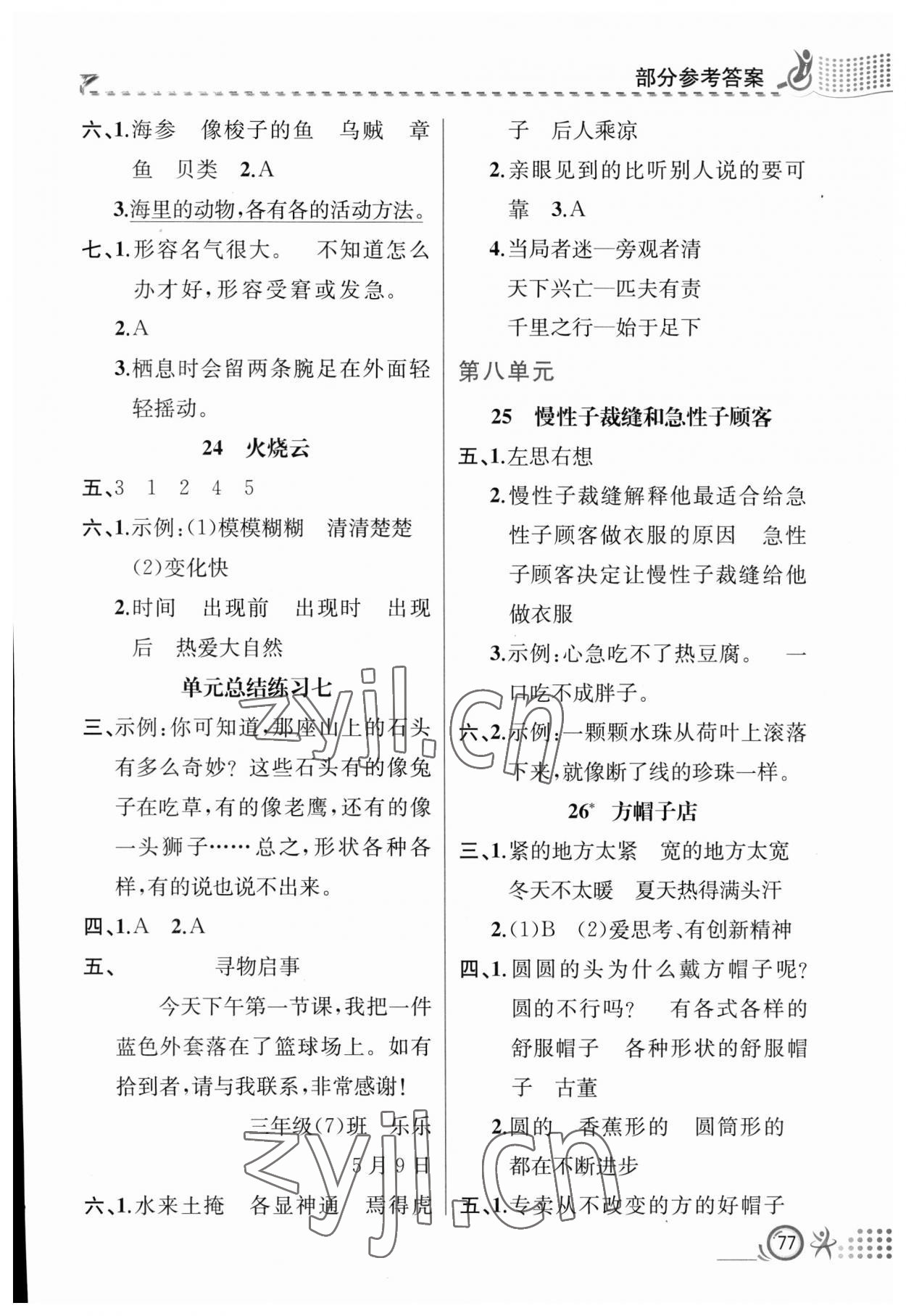注:目前有些书本章节名称可能整理的还不是很完善,但都是按照顺序排列的,请同学们按照顺序仔细查找。练习册 2023年人教金学典同步解析与测评三年级语文下册人教版福建专版 答案主要是用来给同学们做完题方便对答案用的,请勿直接抄袭。