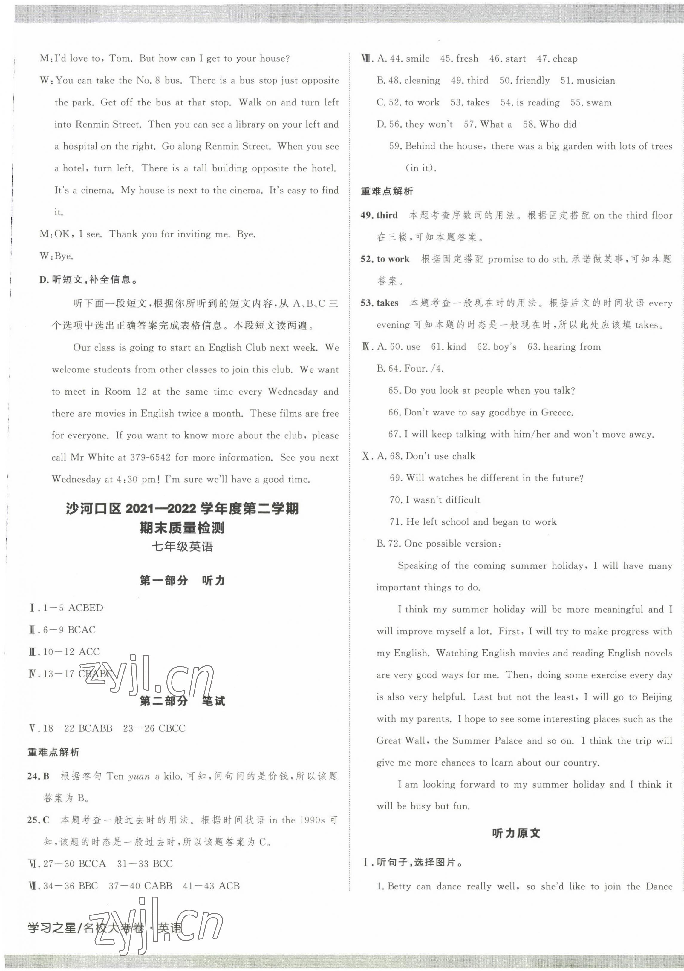 注:目前有些书本章节名称可能整理的还不是很完善,但都是按照顺序排列的,请同学们按照顺序仔细查找。练习册2023年名校大考卷七年级英语下册外研版大连专版答案主要是用来给同学们做完题方便对答案用的,请勿直接抄袭。