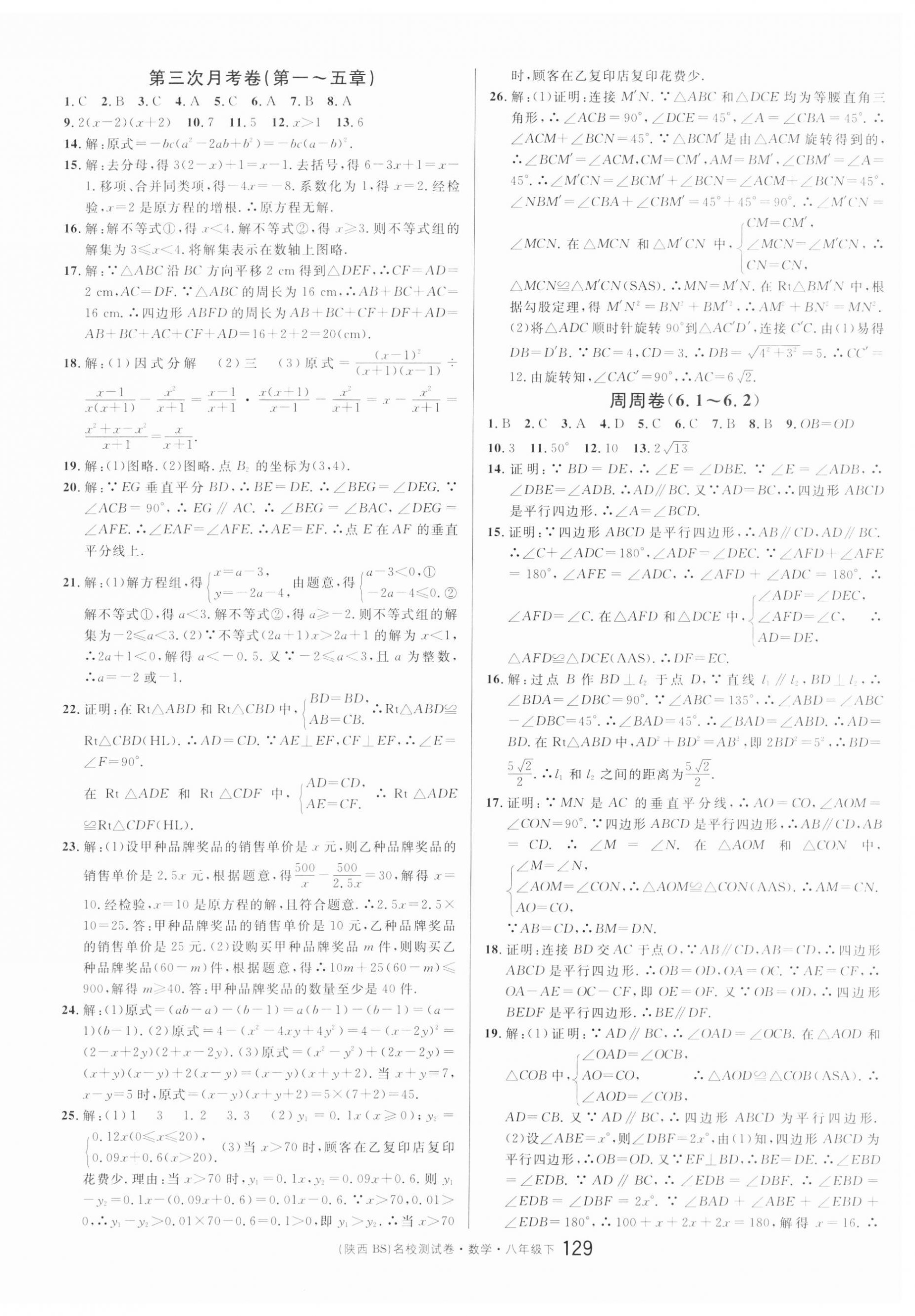 注:目前有些书本章节名称可能整理的还不是很完善,但都是按照顺序排列的,请同学们按照顺序仔细查找。练习册 2023年名校课堂单元卷八年级数学下册北师大版陕西专版 答案主要是用来给同学们做完题方便对答案用的,请勿直接抄袭。