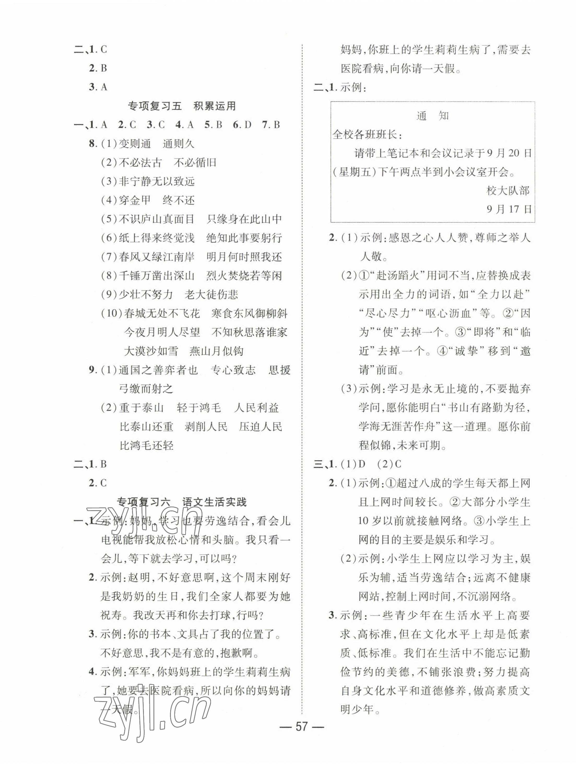 注:目前有些书本章节名称可能整理的还不是很完善,但都是按照顺序排列的,请同学们按照顺序仔细查找。练习册 2023年尚学生香英才天天练六年级语文下册人教版浙江专版 答案主要是用来给同学们做完题方便对答案用的,请勿直接抄袭。