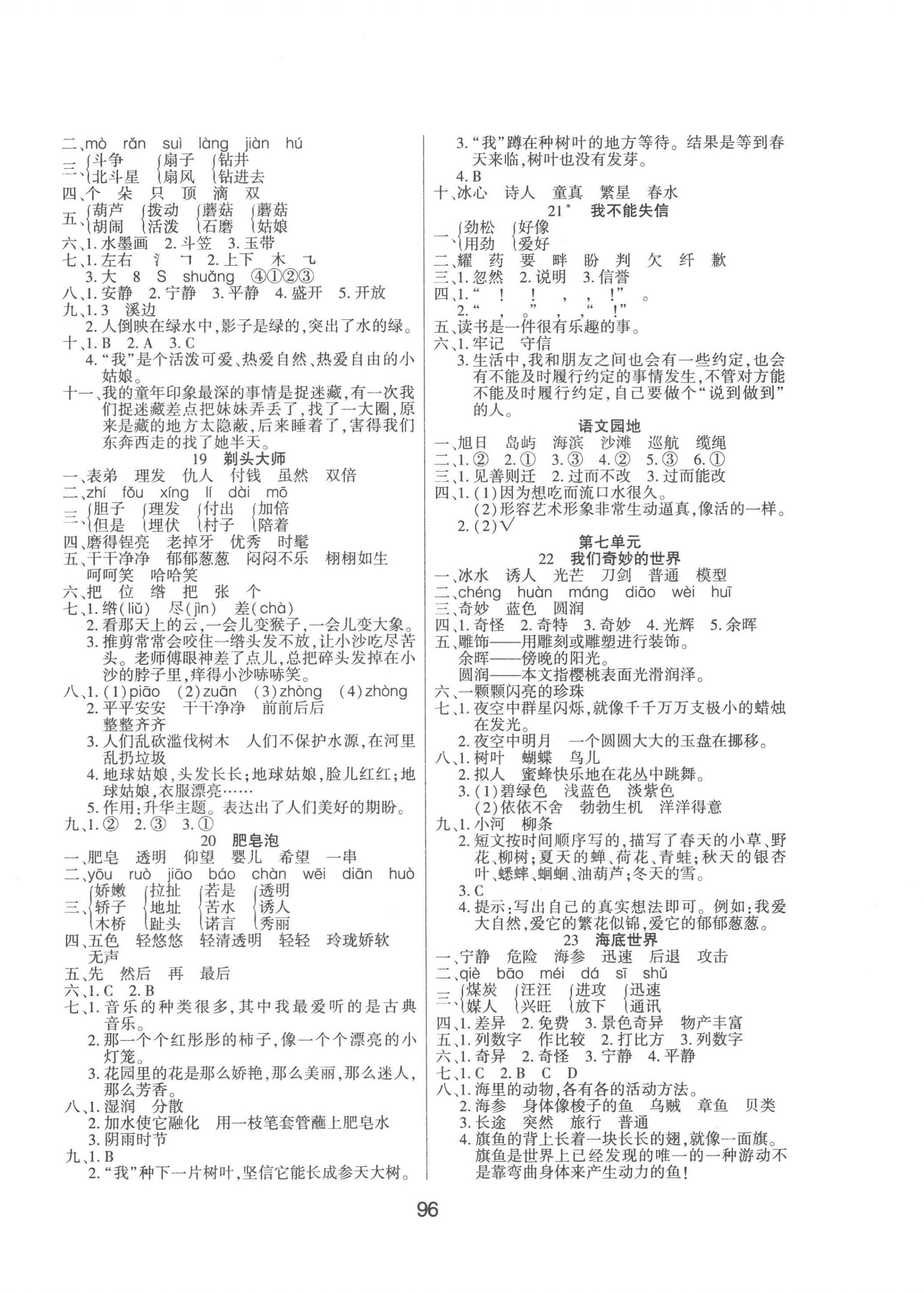 注:目前有些书本章节名称可能整理的还不是很完善,但都是按照顺序排列的,请同学们按照顺序仔细查找。练习册 2023年优佳随堂练三年级语文下册人教版 答案主要是用来给同学们做完题方便对答案用的,请勿直接抄袭。