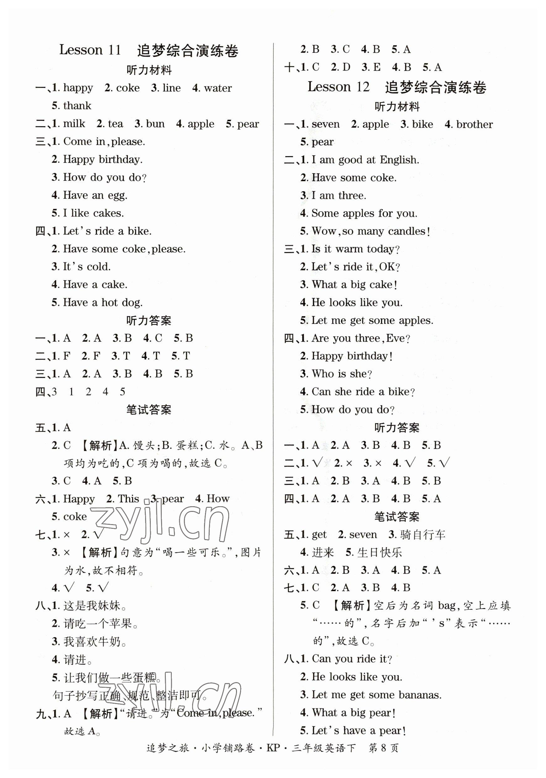 《2023年追梦之旅铺路卷三年级英语下册科普版》